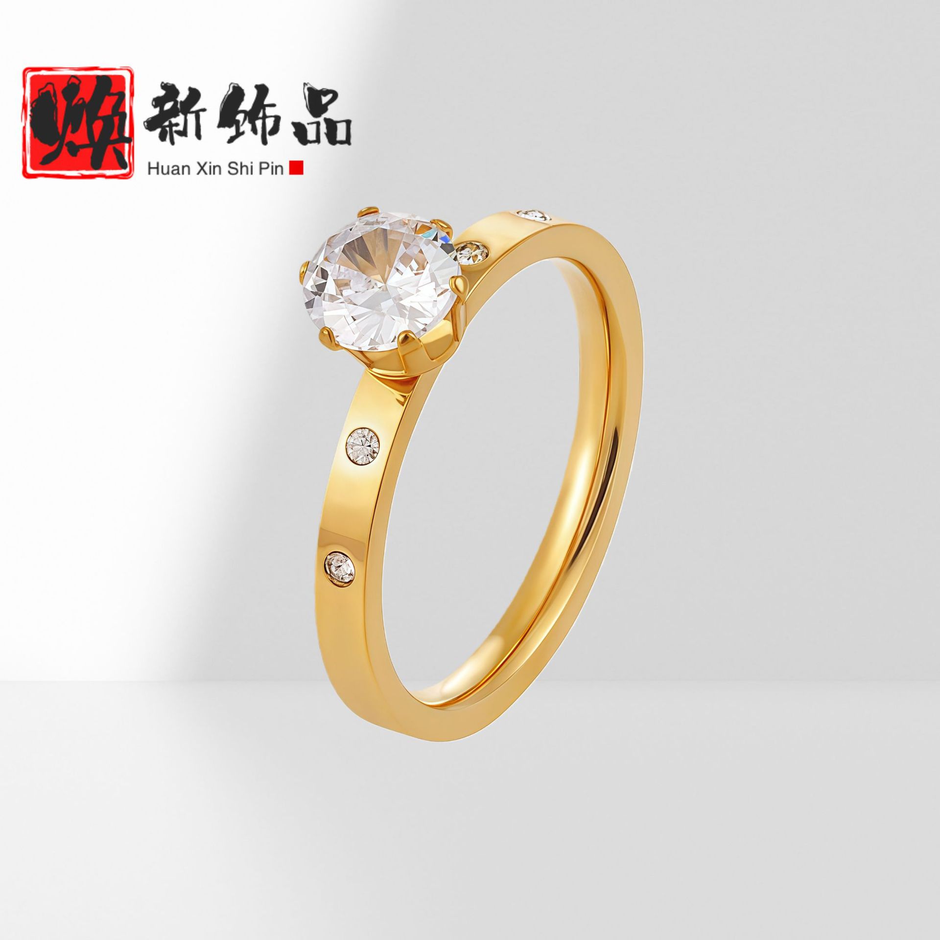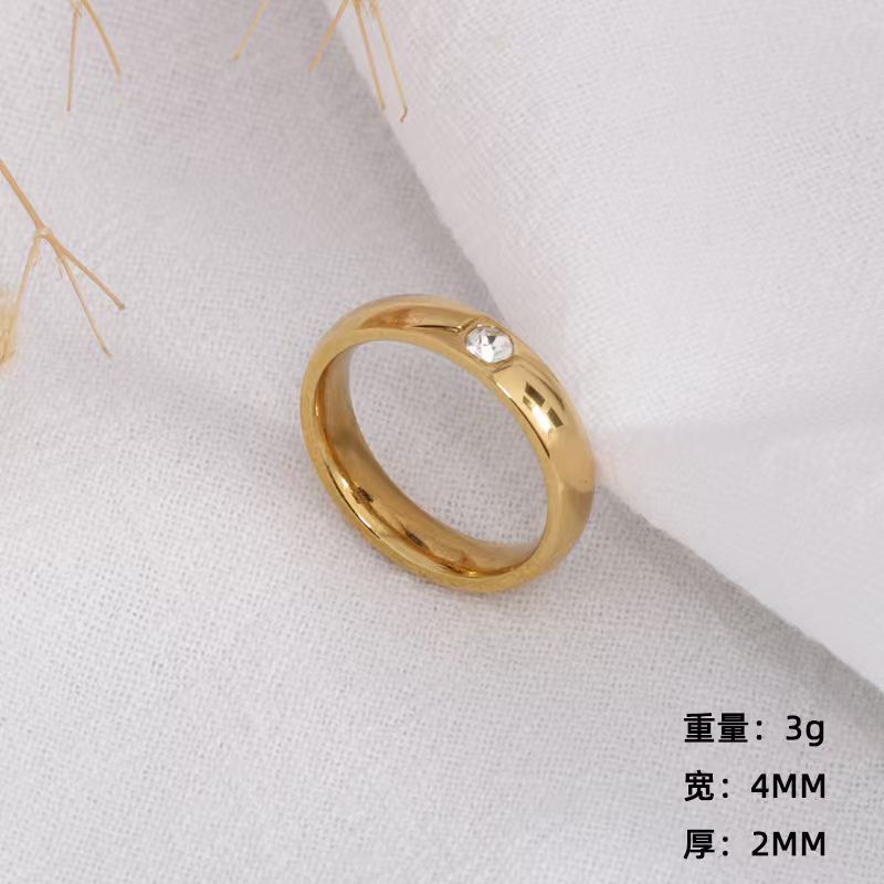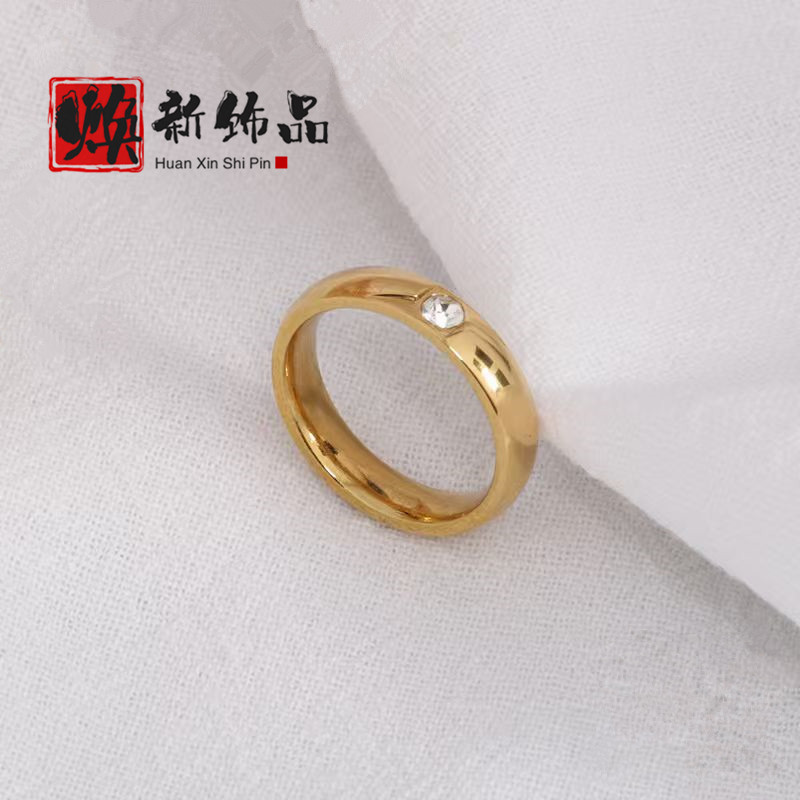 欧美风爆款镀金不褪色钛钢镶钻戒指时尚简约光面情侣指环现货批发