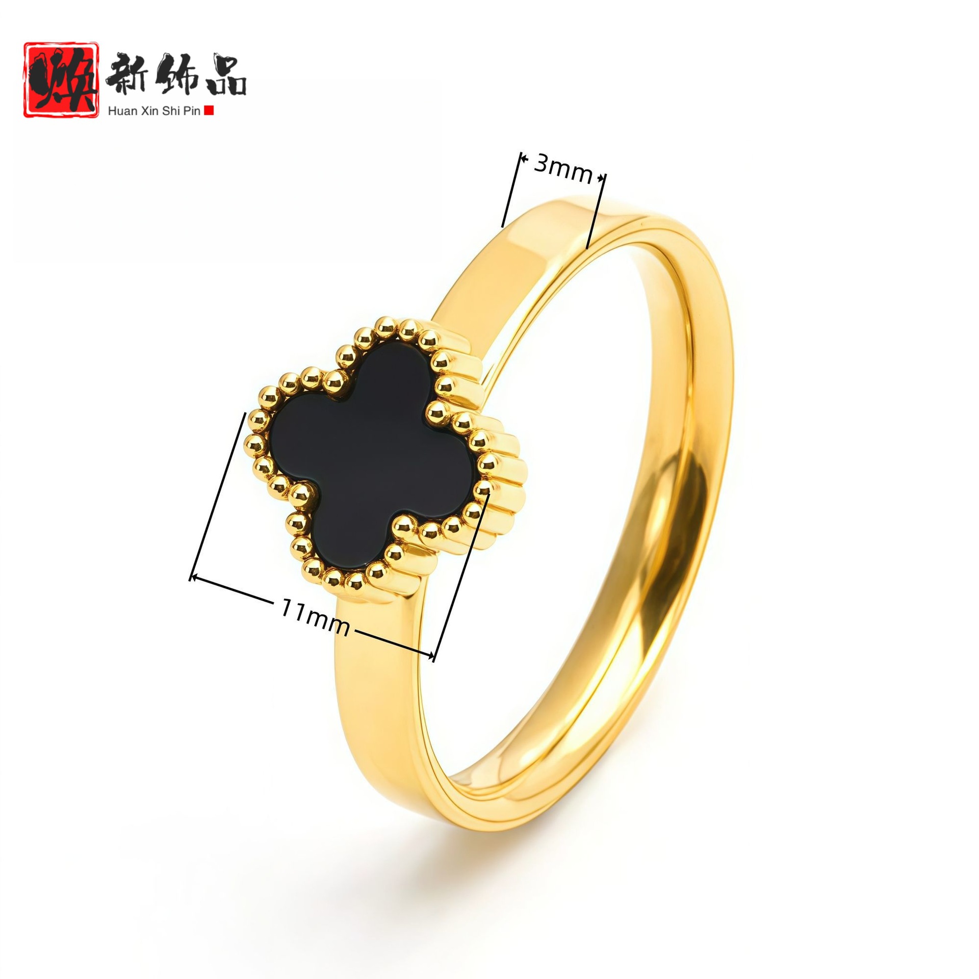 クロスボーダーで汎用性の高い四つ葉のクローバーリング、個性的なデザインでエレガントなインスタイル、18金製で色褪せないジュエリー、花びらの要素を組み合わせた作品