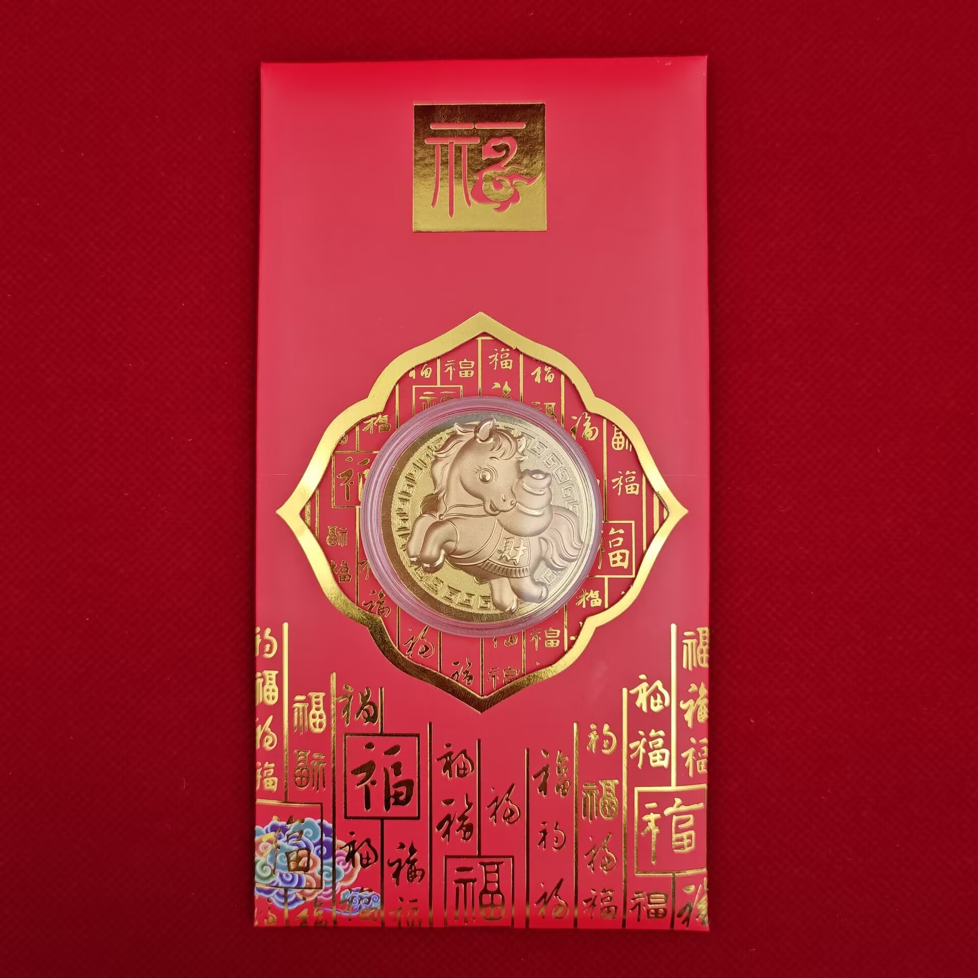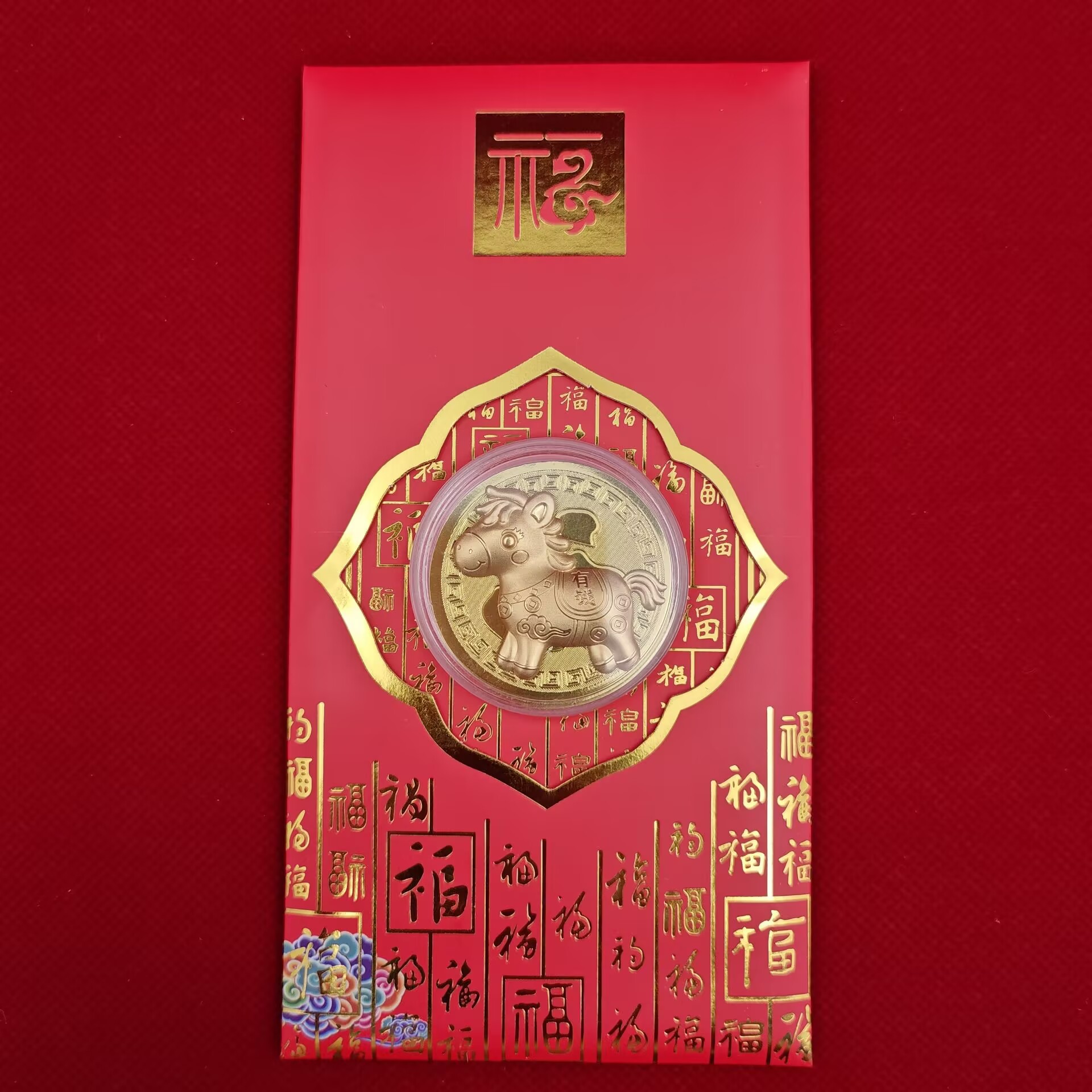 2026马年红包金箔金币利是封Q版12生肖马贺岁招财开运纪念币礼品