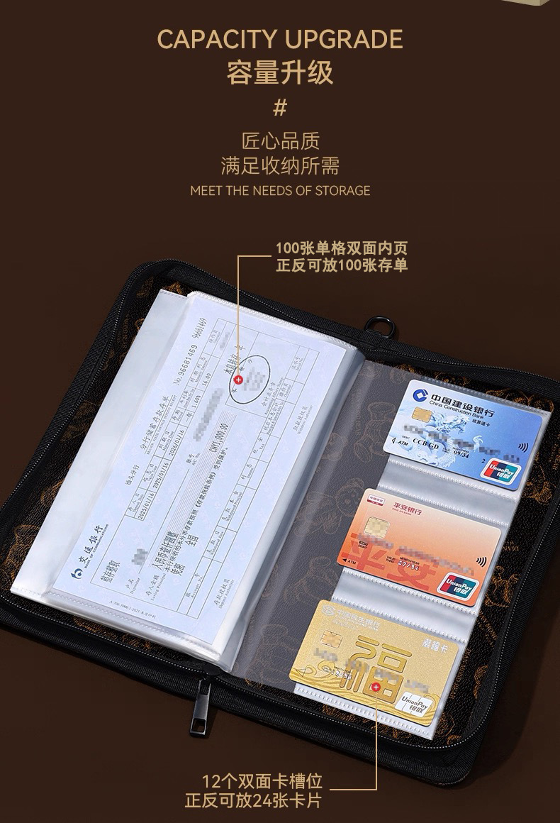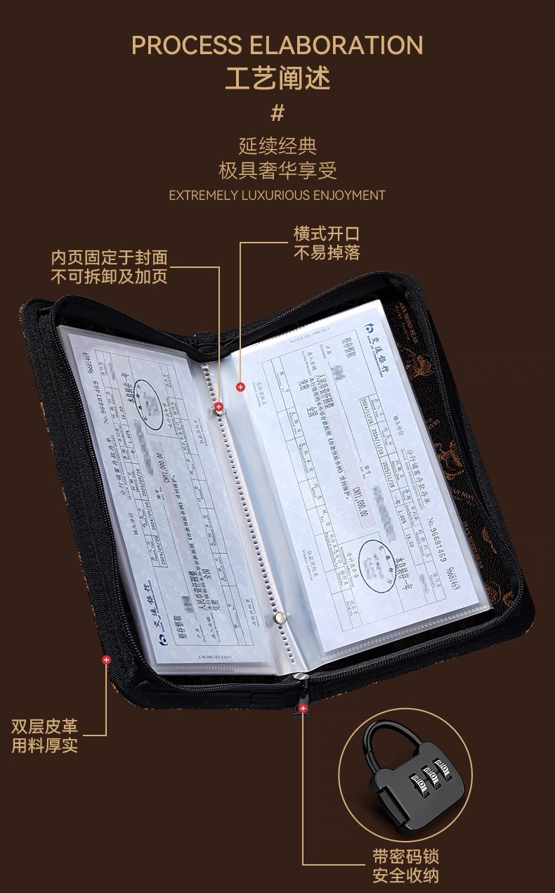 密码锁拉链存单夹票据银行定期活期收纳册存折本大容量存单收集册