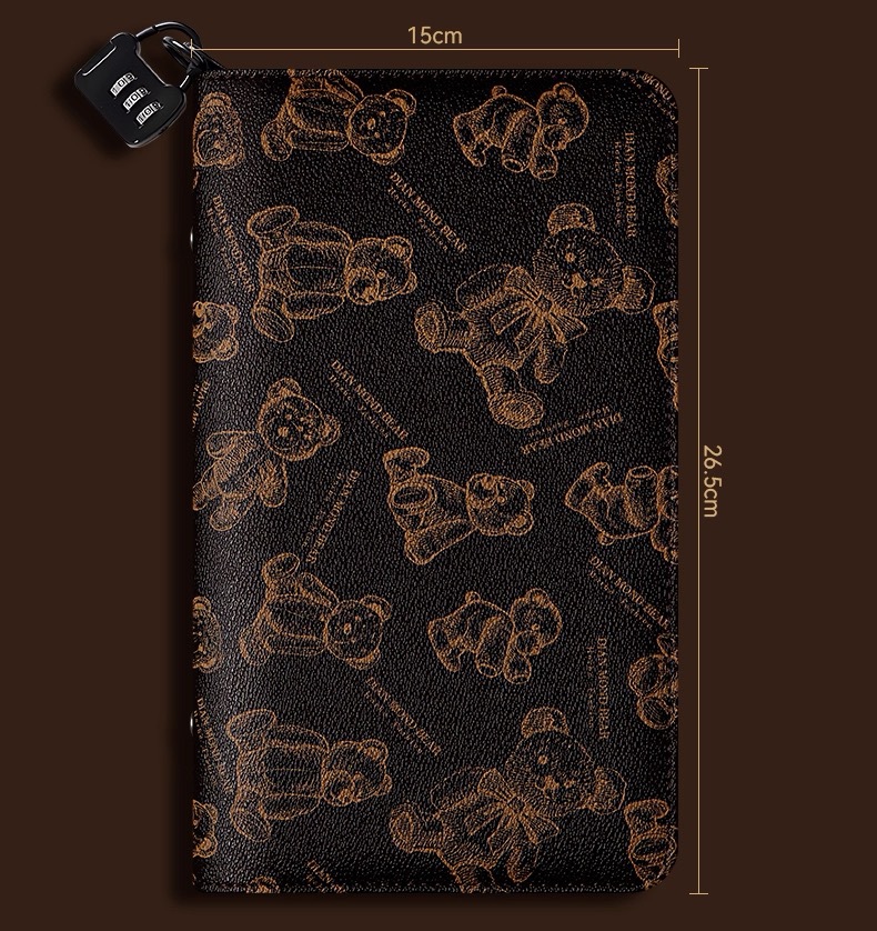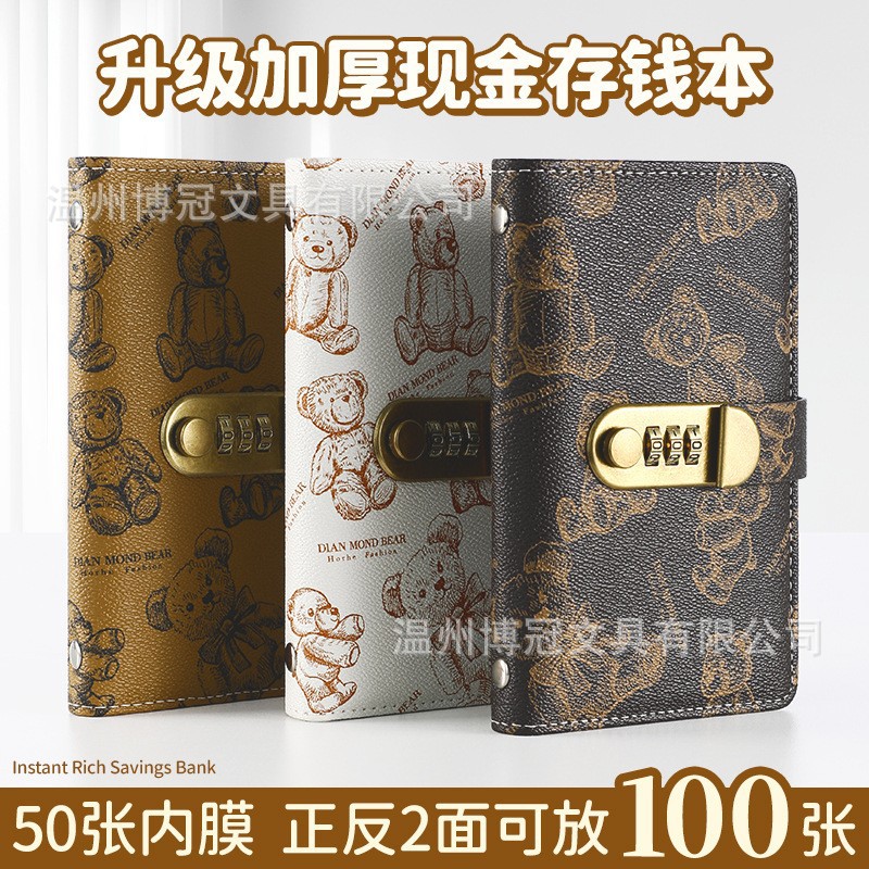 跨境2025年新款密码锁现金存钱本a6记账本存钱夹钱册小熊图案钱包