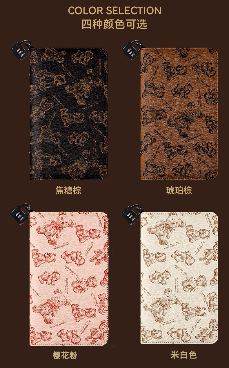 封面颜色 小熊拉链包-焦糖棕(普通版不带锁),小熊拉链包-琥珀棕(普通版不带锁),小熊拉链包-焦糖棕(带锁版),小熊拉链包-琥珀棕(带锁版)