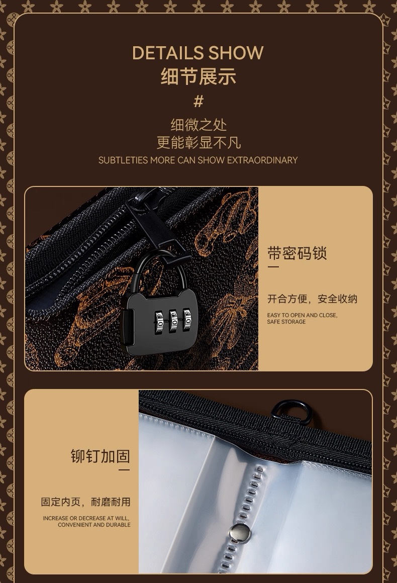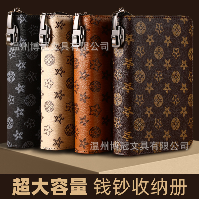 新款老花密码锁拉链款现金存钱本活页内页纪念钞存钱夹钱册收纳册