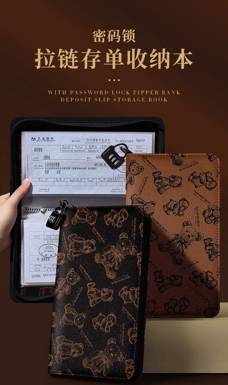 拉链款定期银行存折存单收纳本2025年新款密码锁大容量100存单位