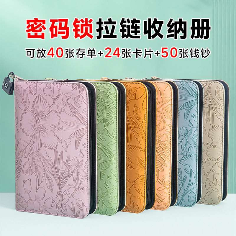 带密码锁多功能拉链款存钱本存钱夹钱册2025年新款老花现金存钱本