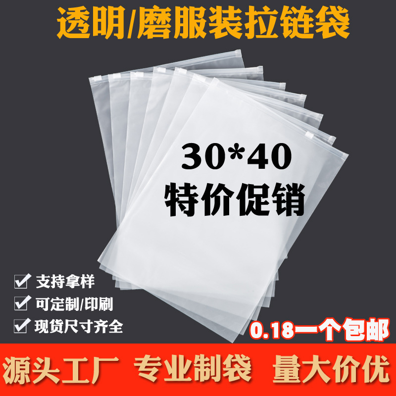 现货自封磨砂塑料拉链袋加厚透明衣服空白家用封口双面拉链袋