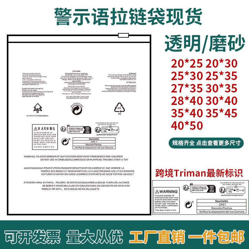 国境を越えた警告語ジッパー袋pe透明服temu包装袋evaフロスト服装プラスチック袋卸売り