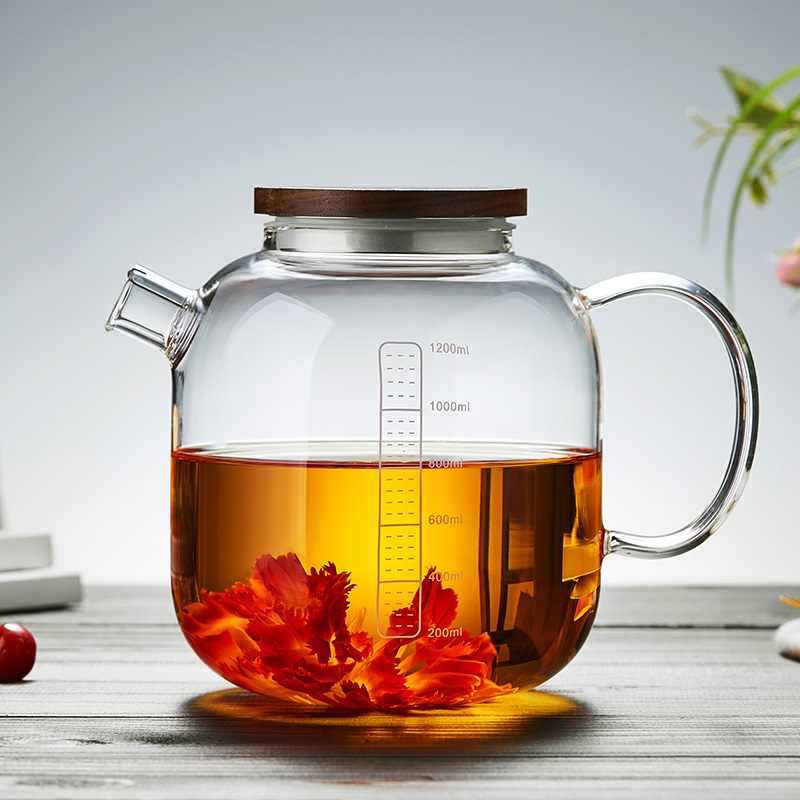 带刻度水壶高硼硅玻璃壶耐高温烧水煮茶壶茶水分离泡茶茶壶冲茶壶