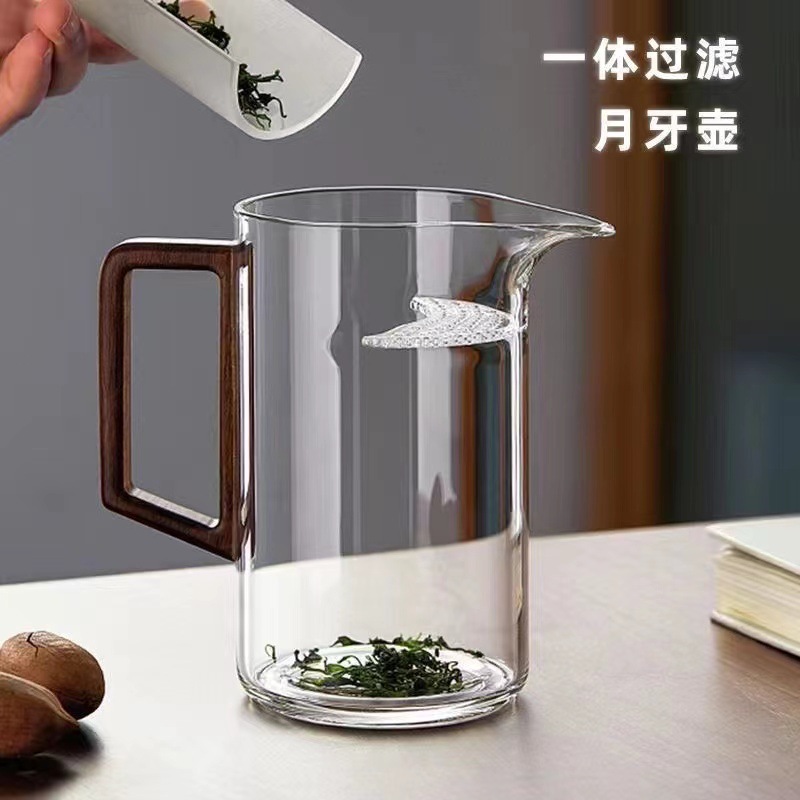 ガラス製茶器 緑茶用 月牙型フィルター一体型 公杯 耐熱 公道杯 ハンドル付き 茶水分離
