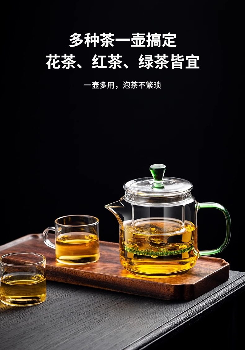 耐熱ガラスティーポットオフィス家庭用防爆フィルターお茶耐高煮ティーポット電気コンロ加熱茶水分離