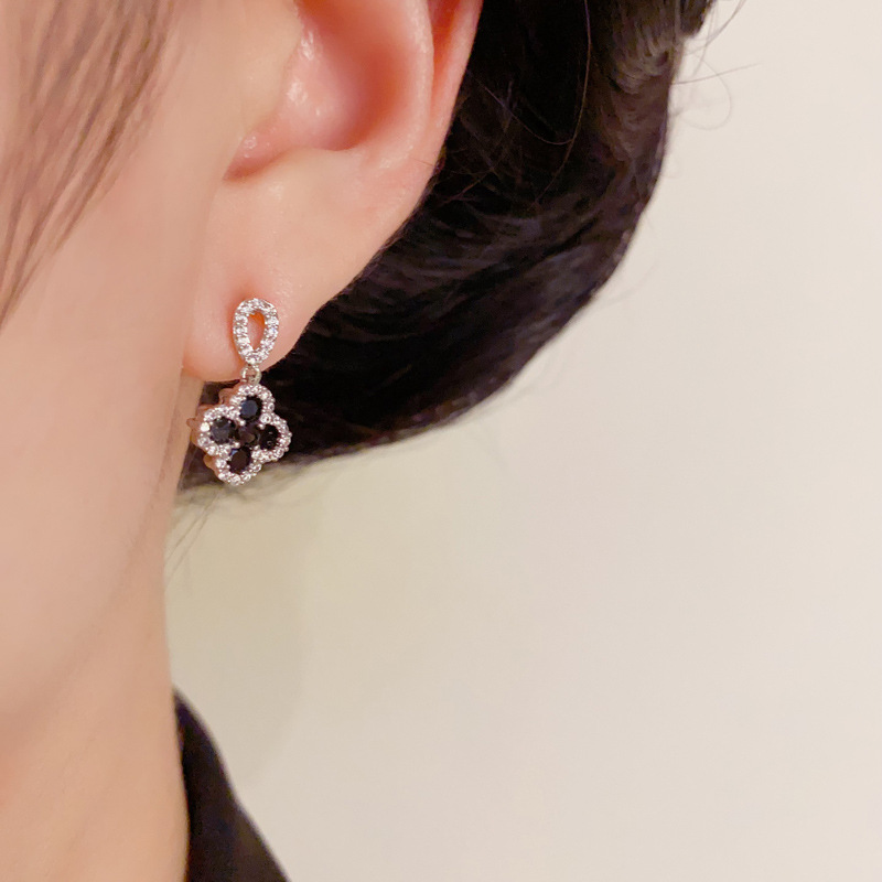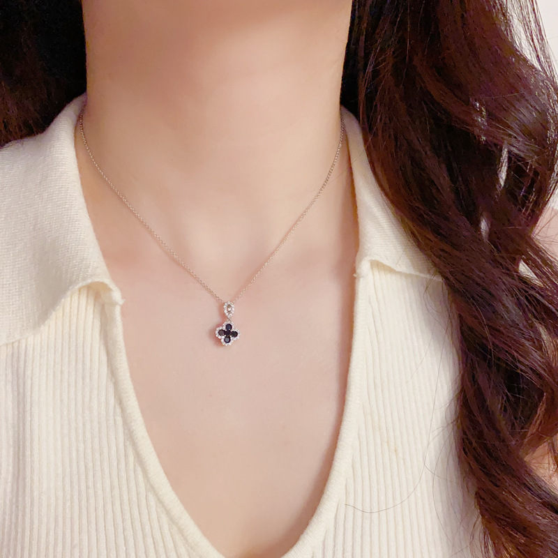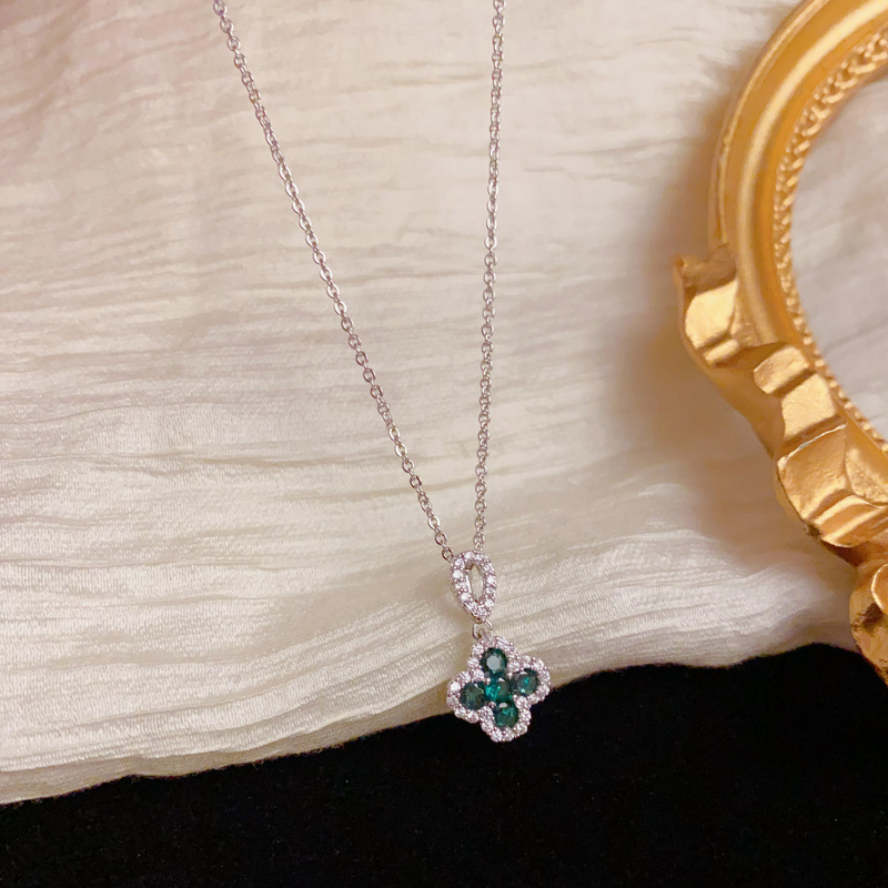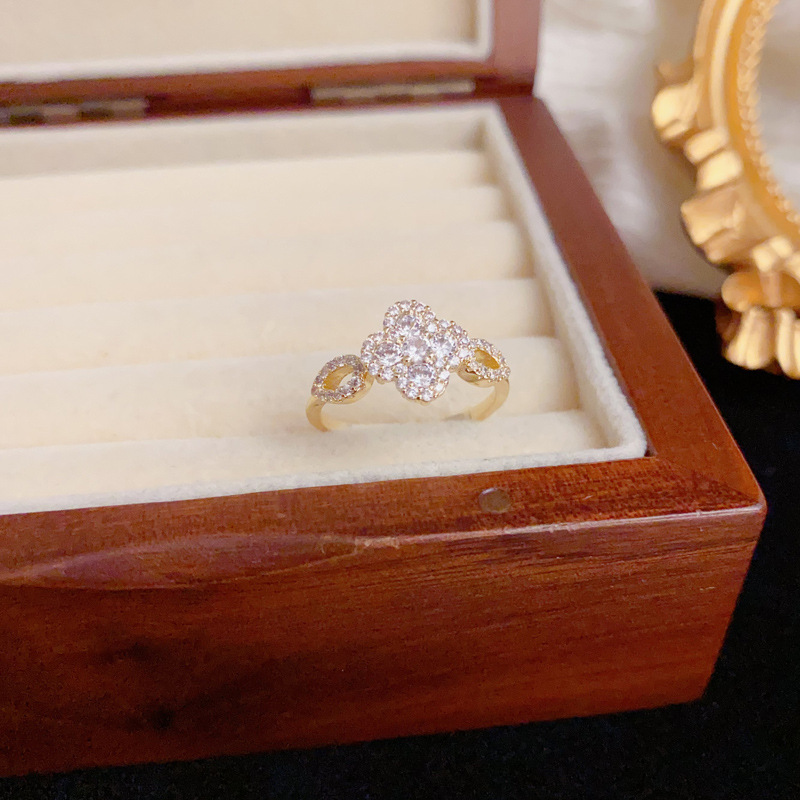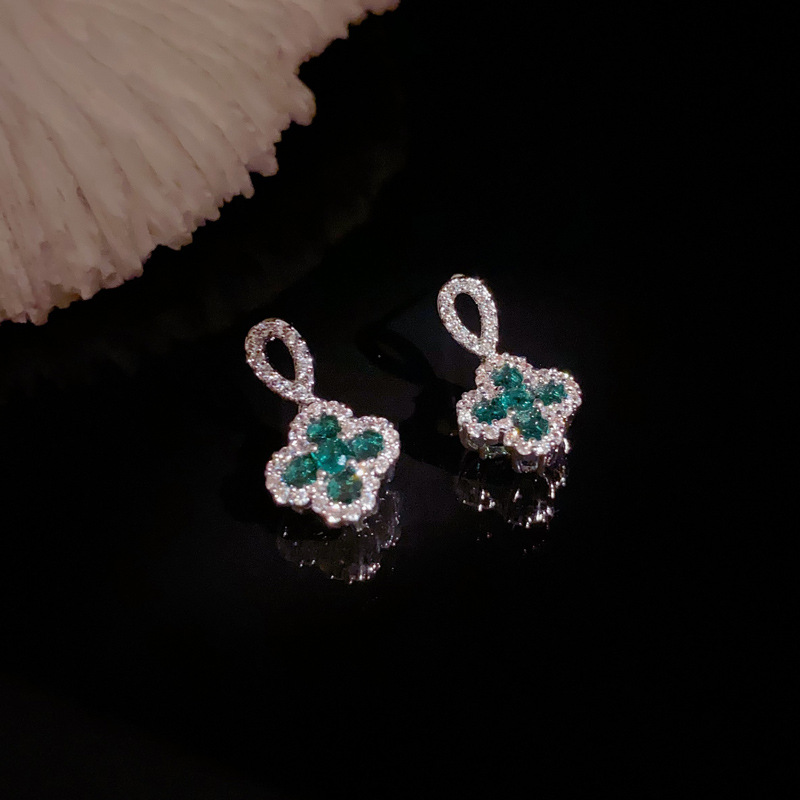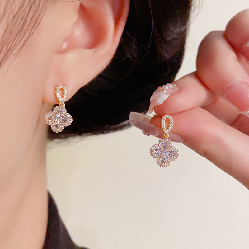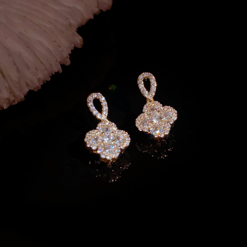 小众精致时尚微镶锆石四叶花耳环女气质日常通勤超闪项链戒指批发