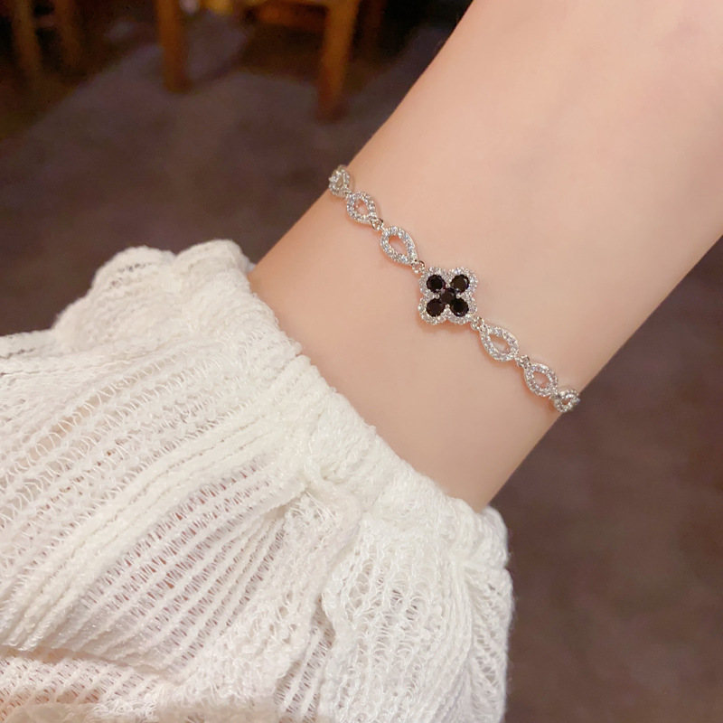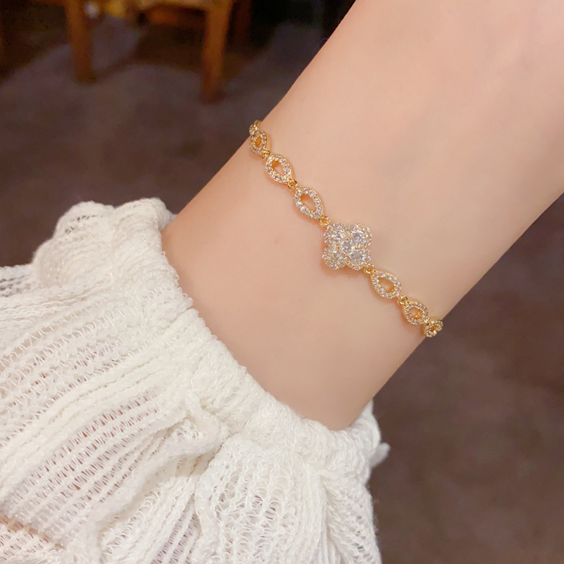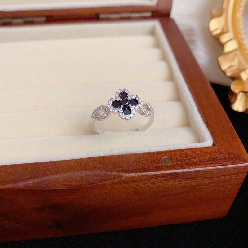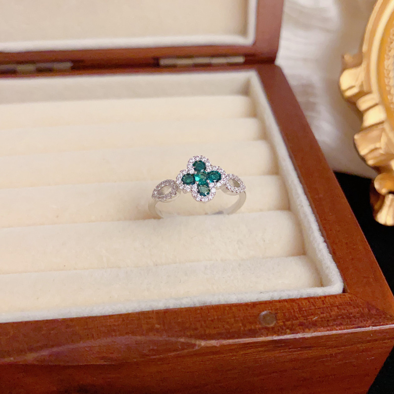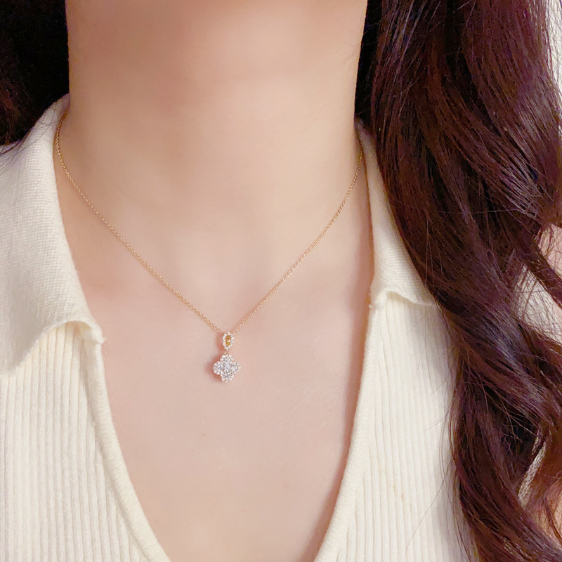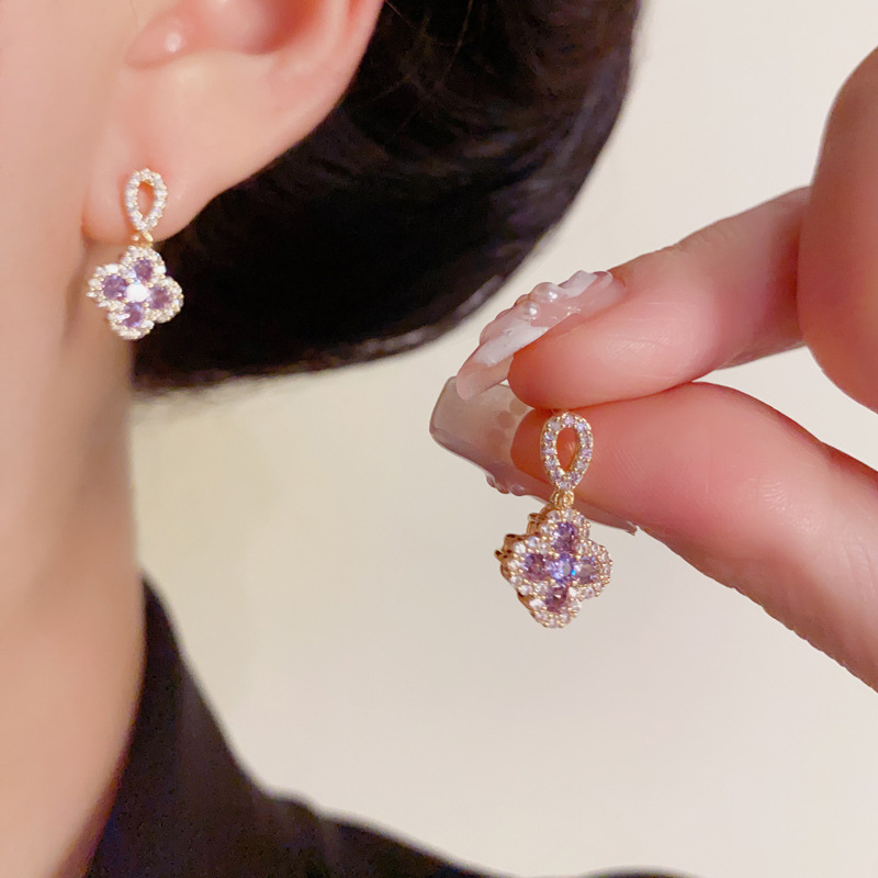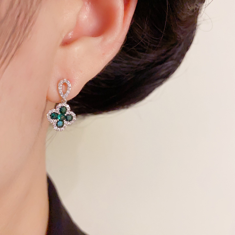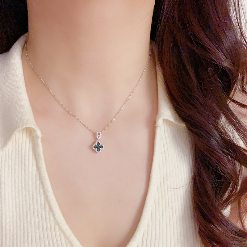 小众精致时尚微镶锆石四叶花耳环女气质日常通勤超闪项链戒指批发