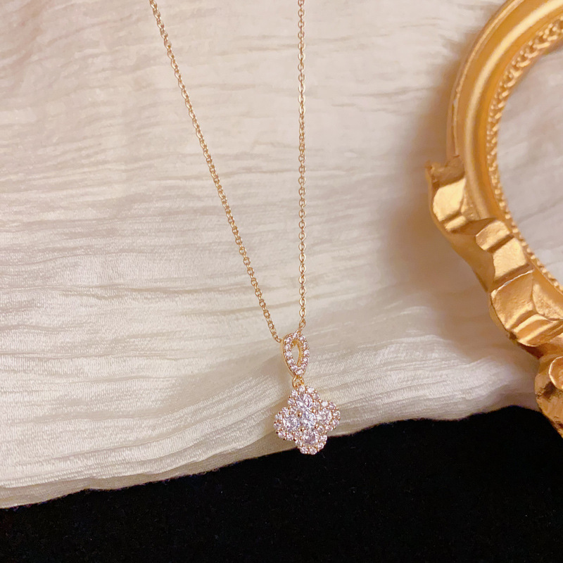 韩版精致时尚微镶锆石四叶花耳环女气质日常通勤超闪项链戒指批发