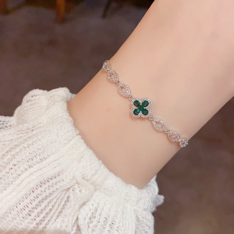軽豪華小衆ファッションデザイン感銀色猫眼石銀杏葉ブレスレット