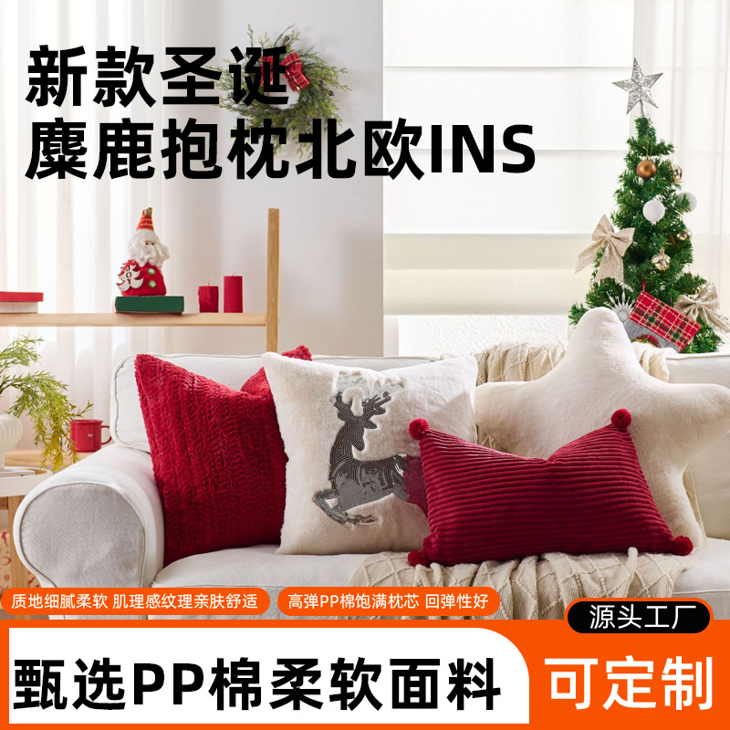 跨境新款圣诞麋鹿抱枕北欧ins卧室靠枕套客厅沙发节日装饰靠枕