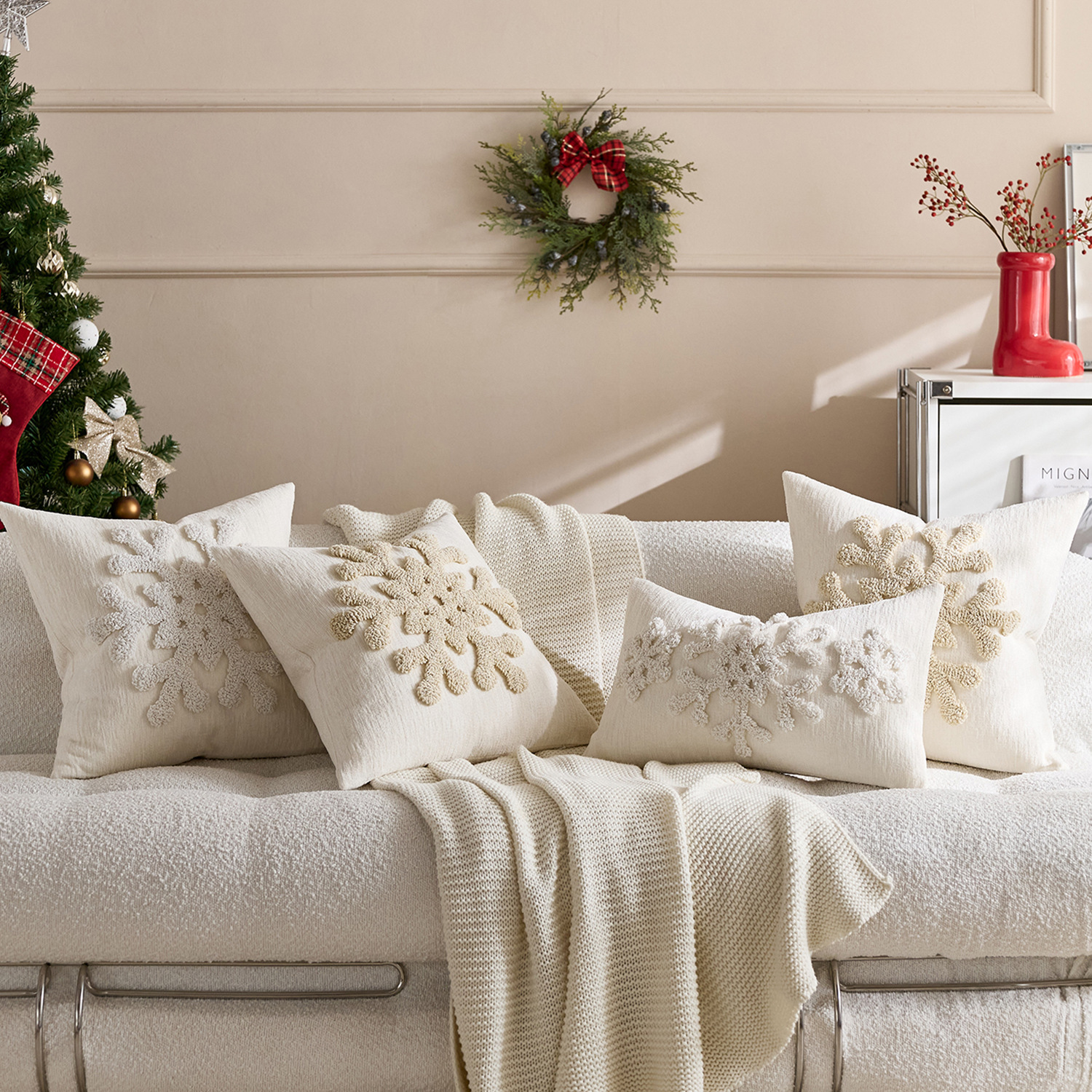 跨境圣诞款圈绒绣雪花抱枕套波西米亚绣花圣诞节抱枕套亚马逊家居