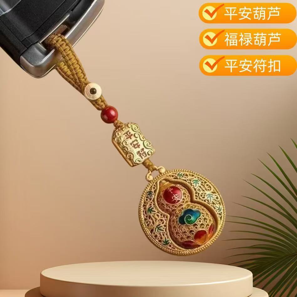 情侣款创意沙金平安葫芦钥匙扣汽车钥匙挂饰男女手机链福禄礼品