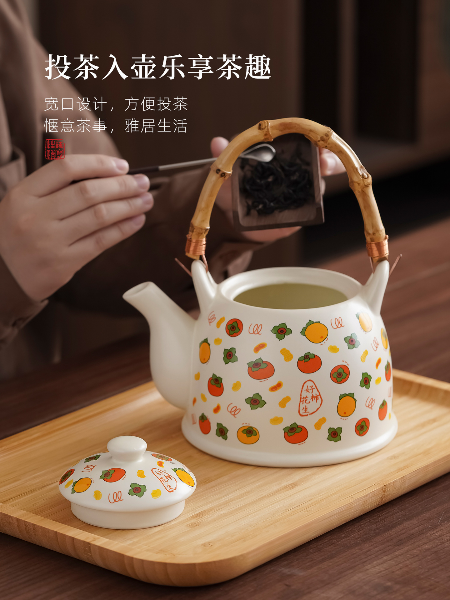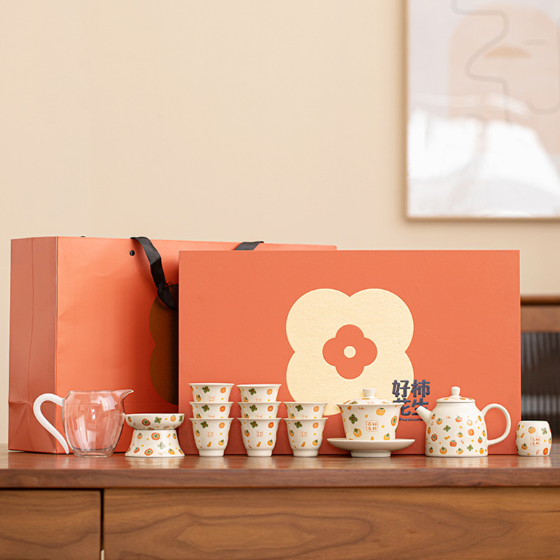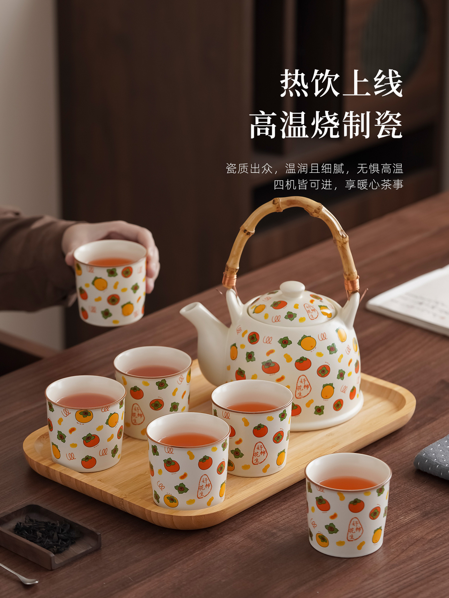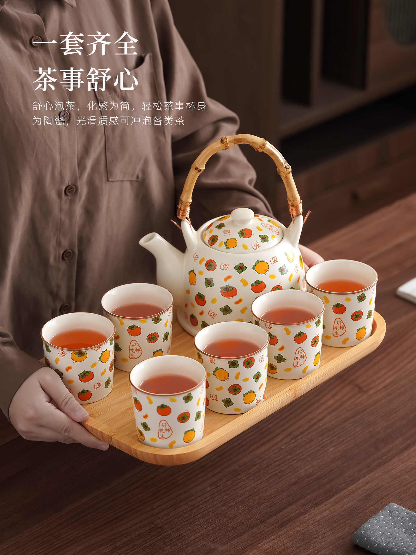 「好柿落花生」工夫茶器セット家庭用陶磁器カップティーポット