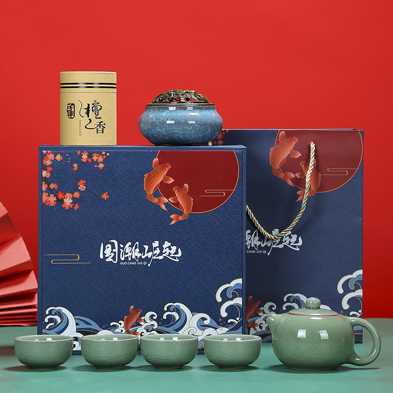 全国トレンドティーセット 1 ポット 4 カップセラミック Ge Kiln Xishi カンフーティーポットティーカップギフトボックスお土産ギフト