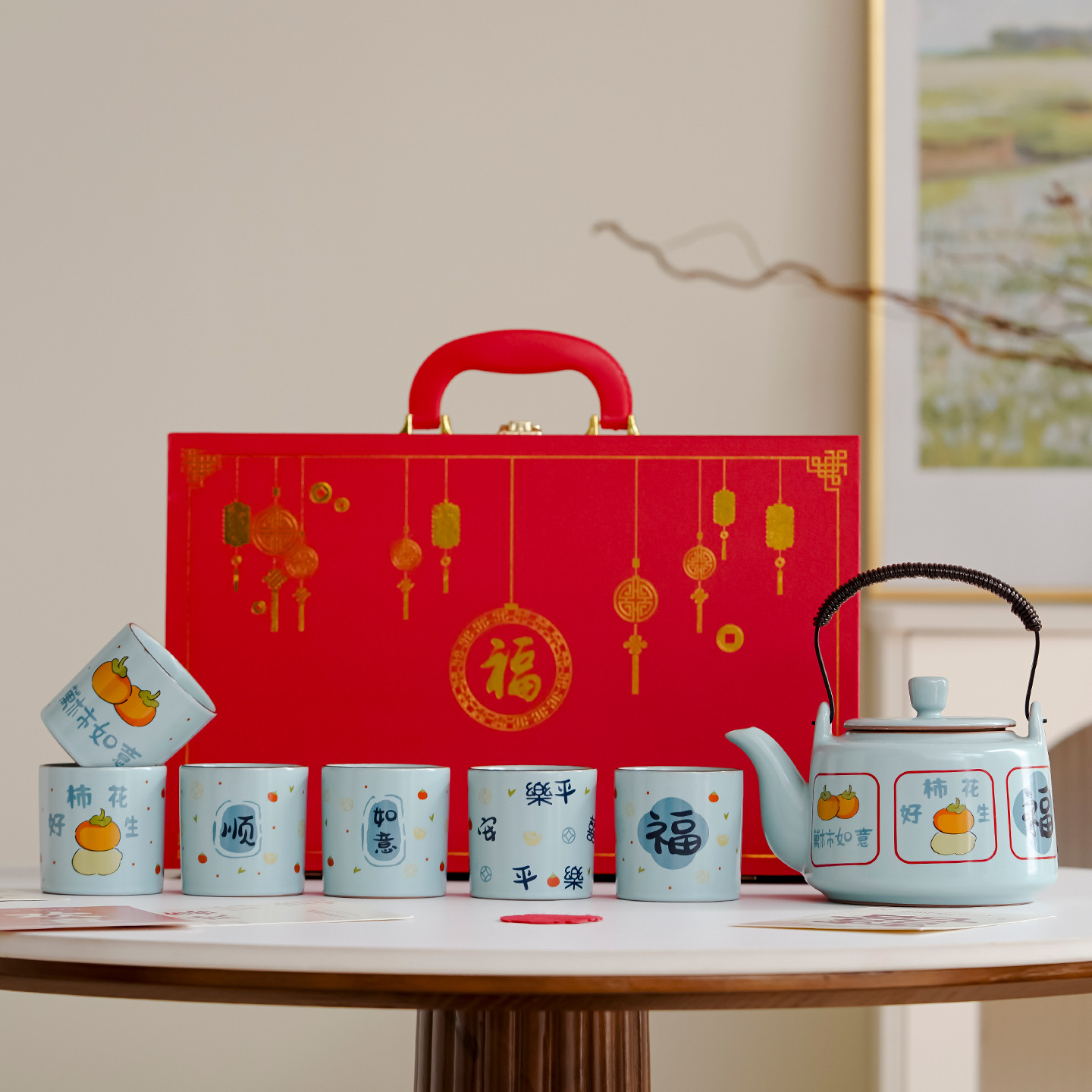 好事发生提梁壶茶具套装一壶六杯喜庆结婚纪念伴手礼公司活动用品