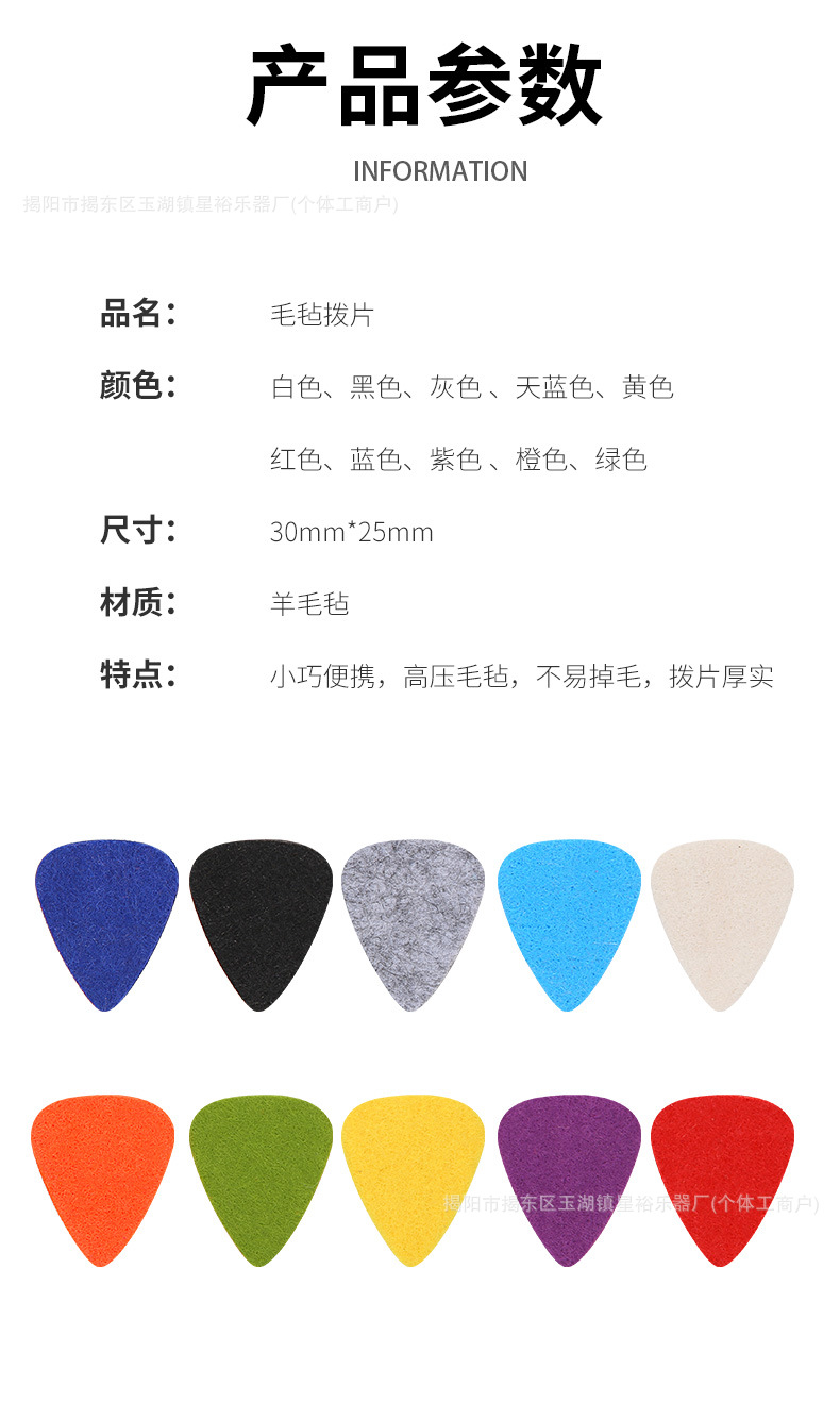 颜色 毛毡拨片【黑色】,毛毡拨片【灰色】,毛毡拨片【白色】,毛毡拨片【深蓝色】,毛毡拨片【天蓝色】,毛毡拨片【绿色】,毛毡拨片【紫色】,毛毡拨片【红色】,毛毡拨片【黄色】,毛毡拨片【橙色】