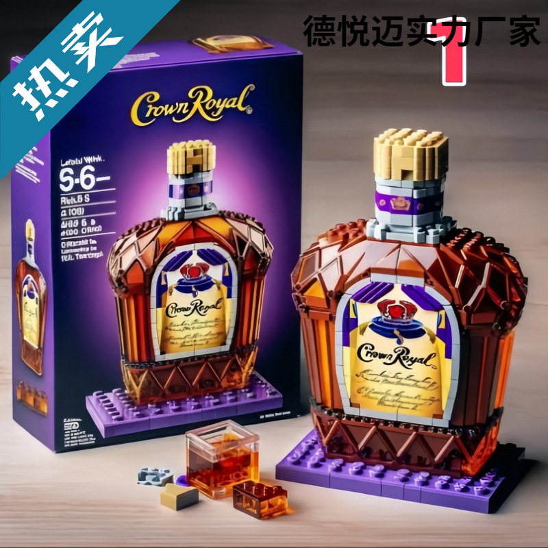 定制跨境积木威士忌酒樽高级洋酒瓶子桌面摆件套装酒文化创意积木