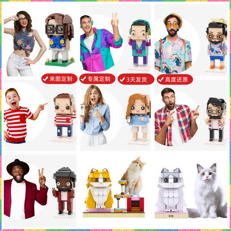 ビルディングブロック丸顔ミニフィギュア、カスタマイズギフト、男性と女性の友人へのDIYホリデーギフト、赤ちゃんの記念日のポートレートスタイル