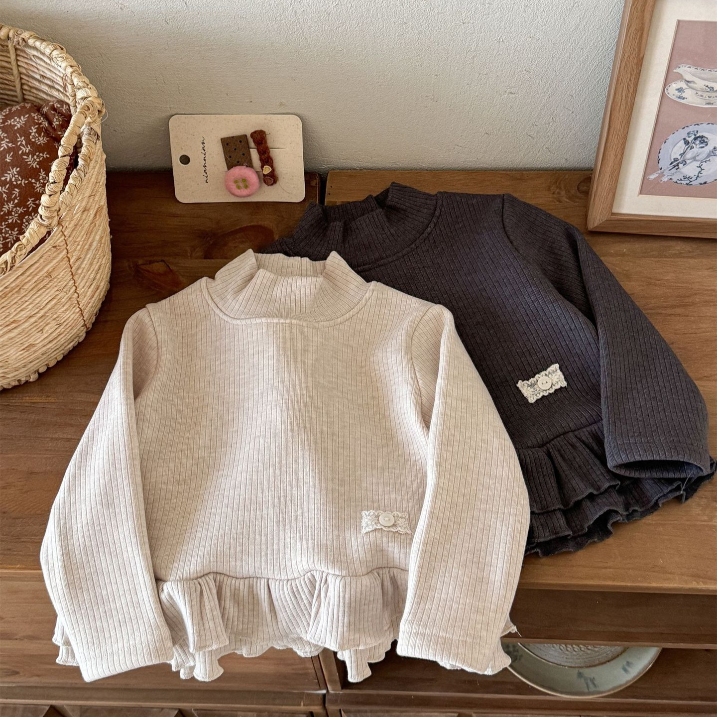 莱抱抱2025秋冬季加绒加厚女童下摆打底衫半高领保暖洋气上衣打底