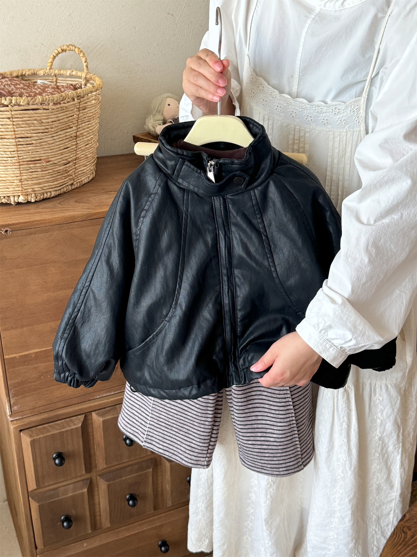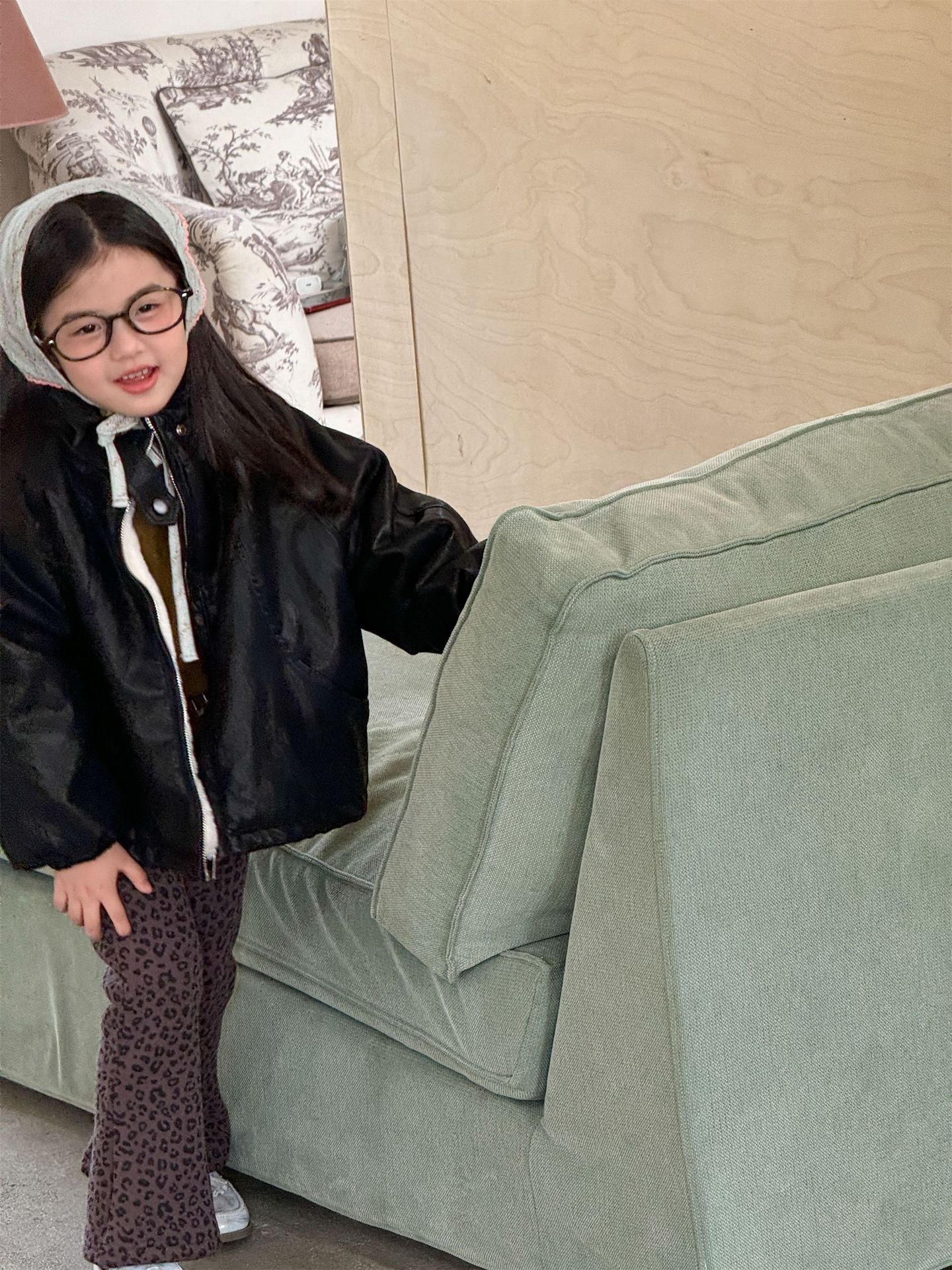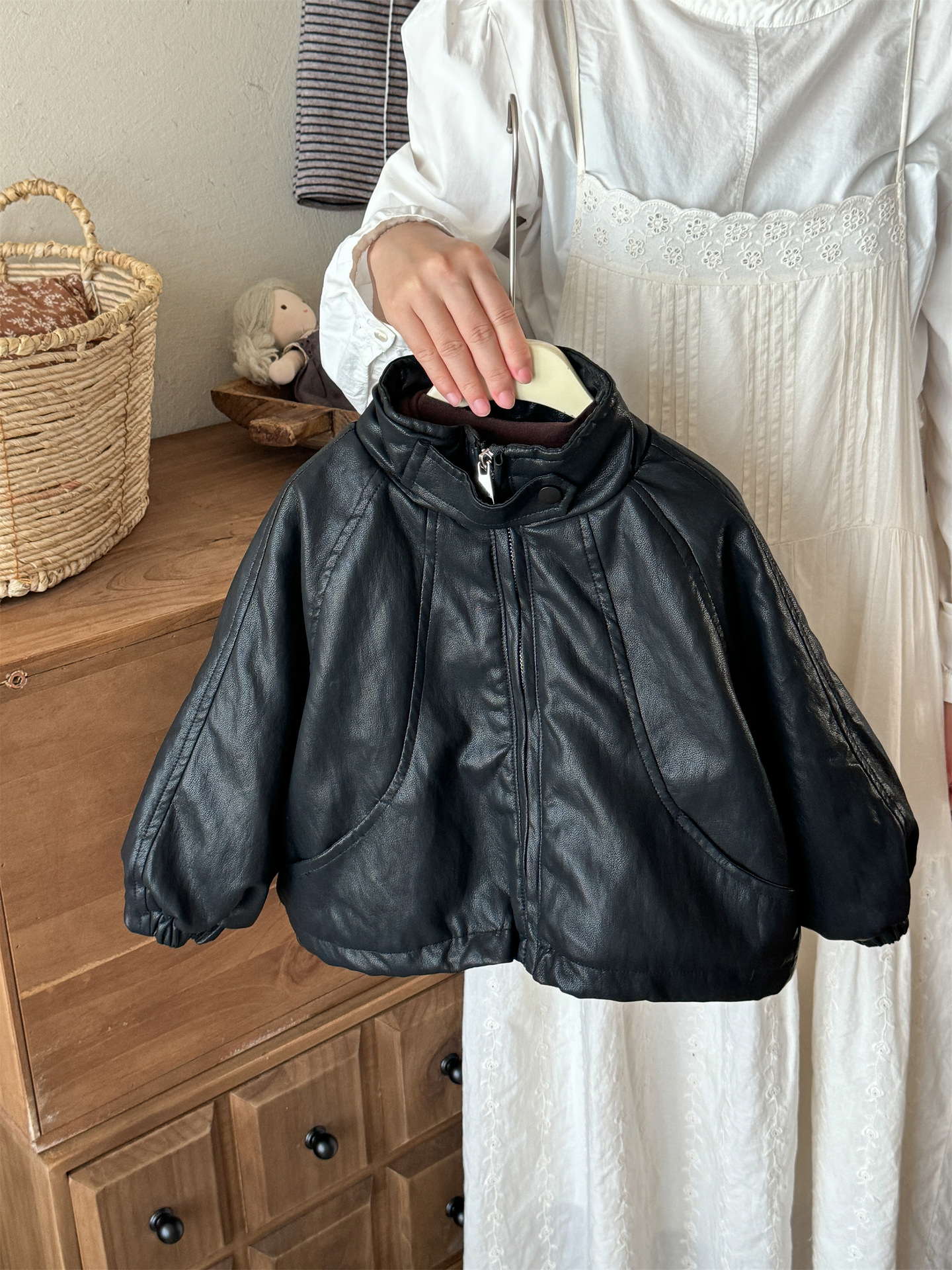 莱抱抱2025冬季新品韩版森系宽松休闲时髦简约百搭女童加绒皮衣