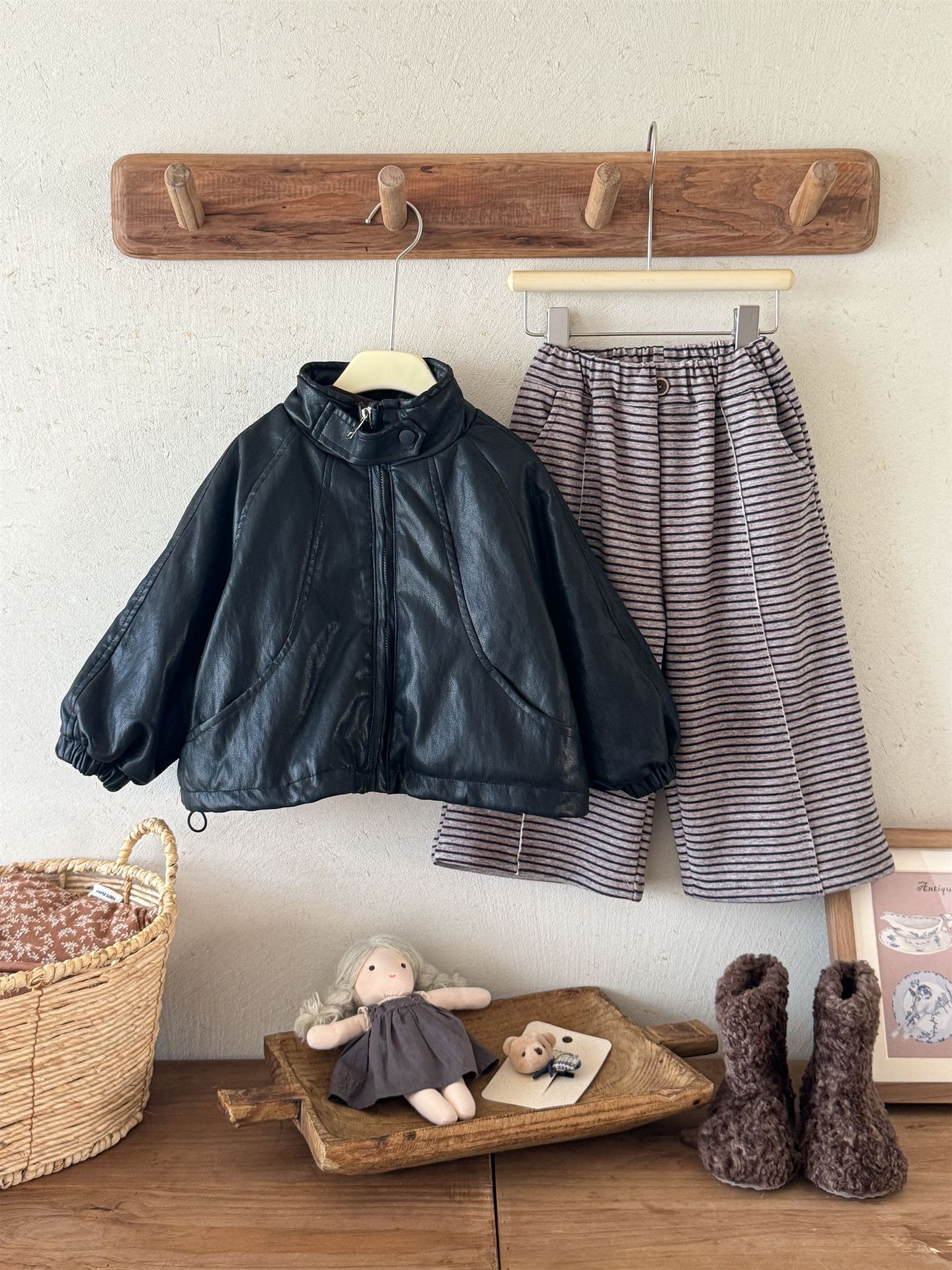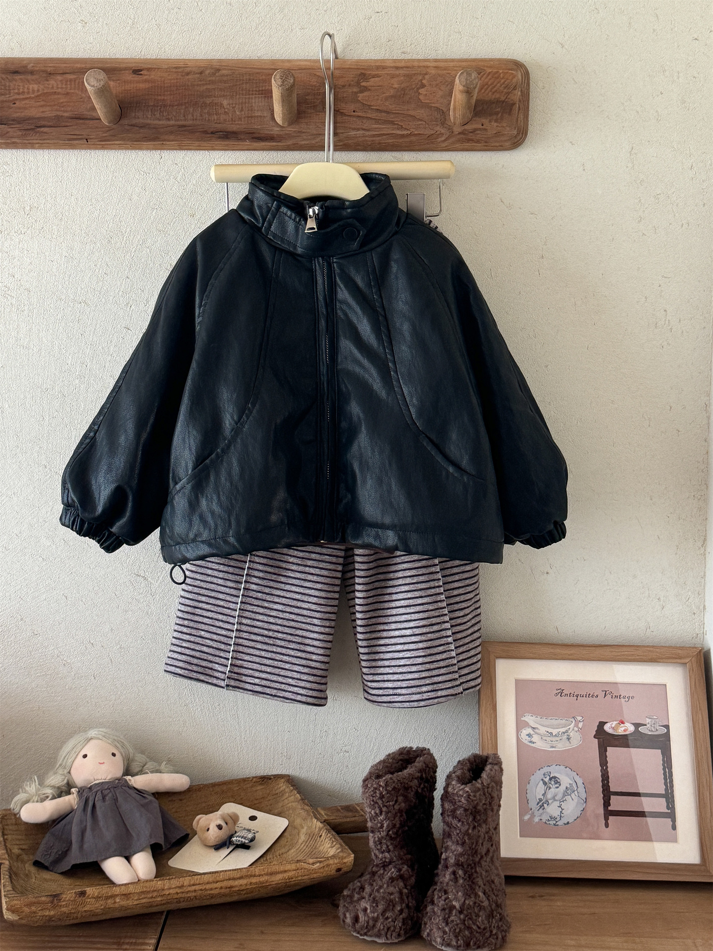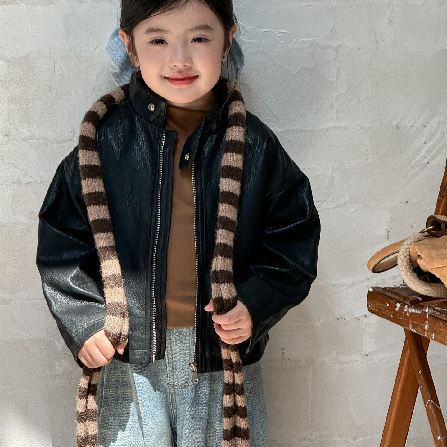 莱抱抱2025冬季新品韩版森系宽松休闲时髦简约百搭女童加绒皮衣