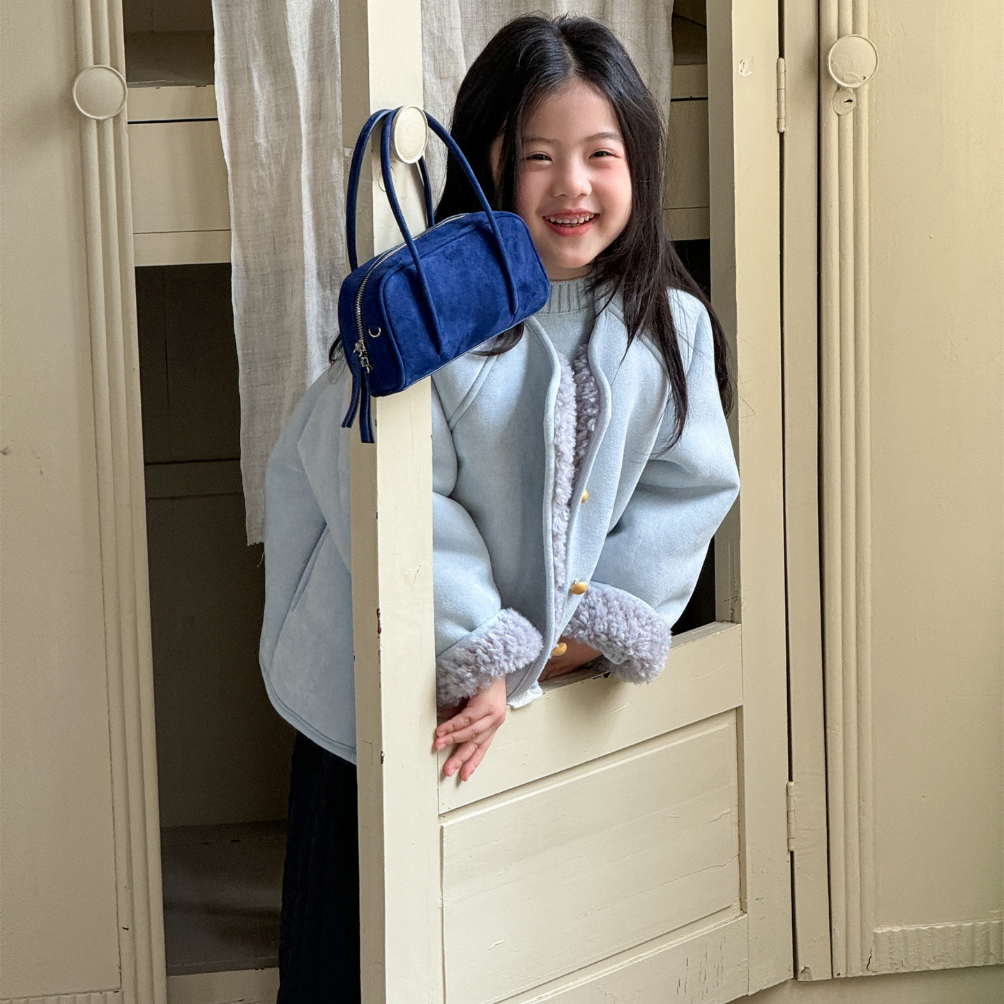 莱抱抱2025新款女孩洋气浅蓝色夹棉加厚毛呢外套时髦