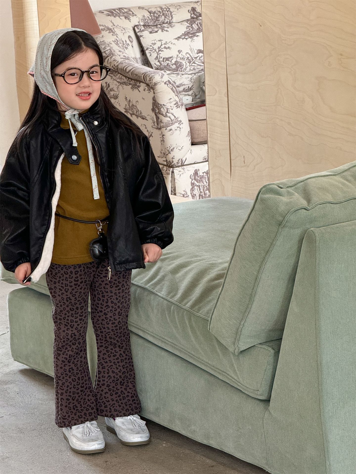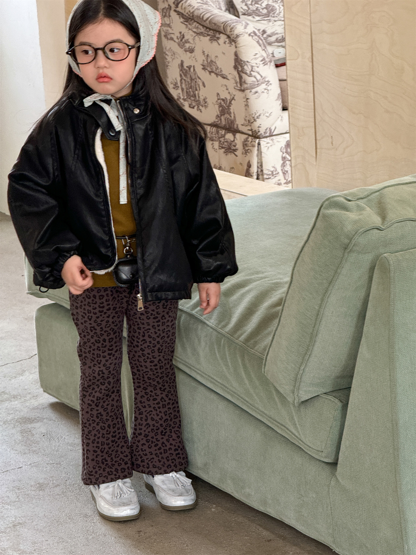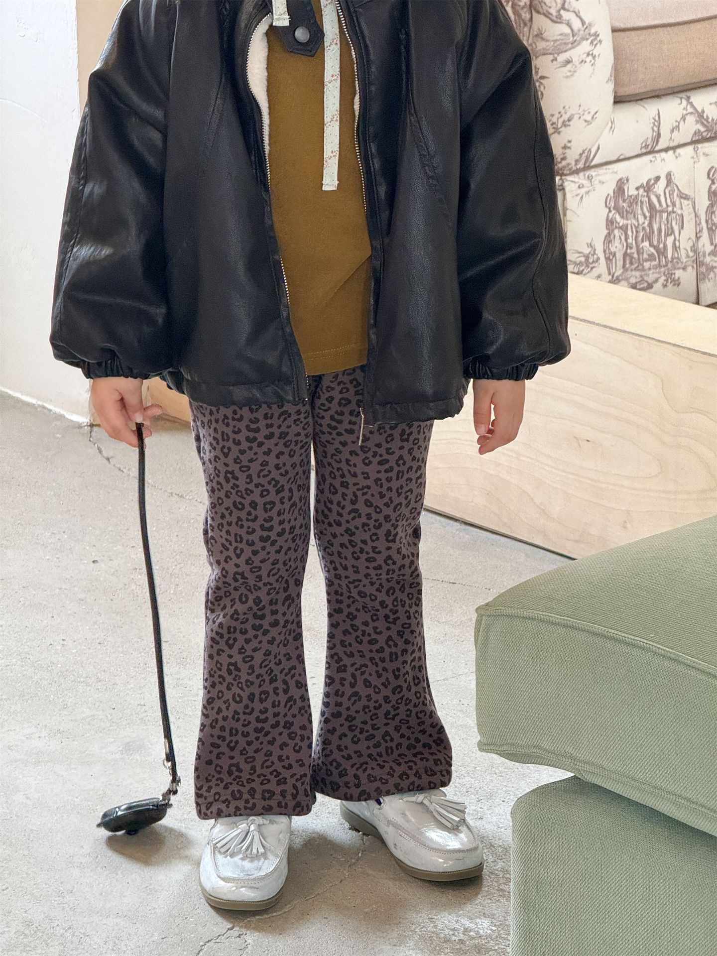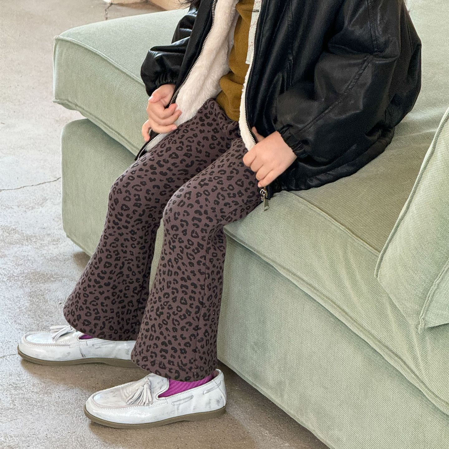莱抱抱2025秋冬季新款加绒加厚微喇豹纹裤女童百搭洋气豹纹喇叭裤