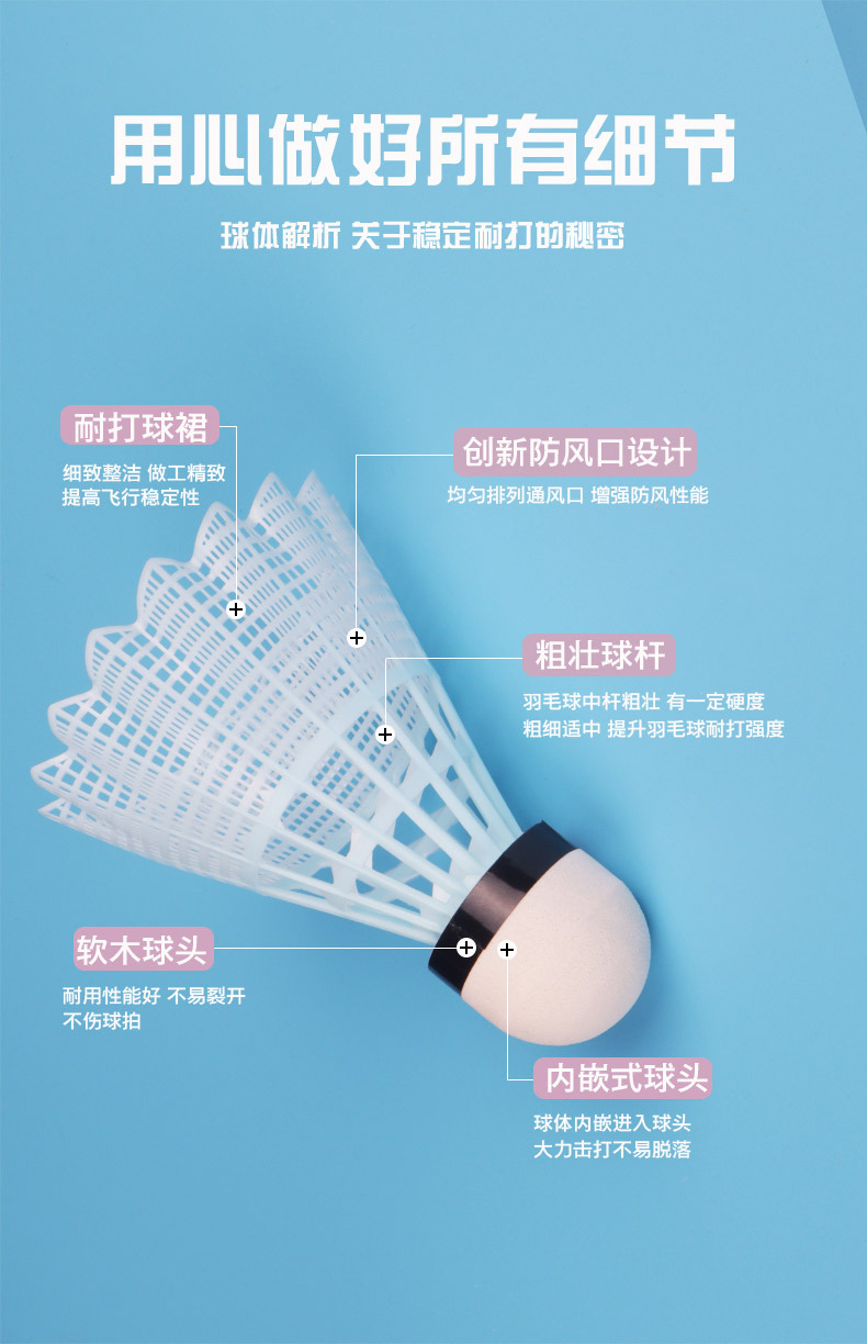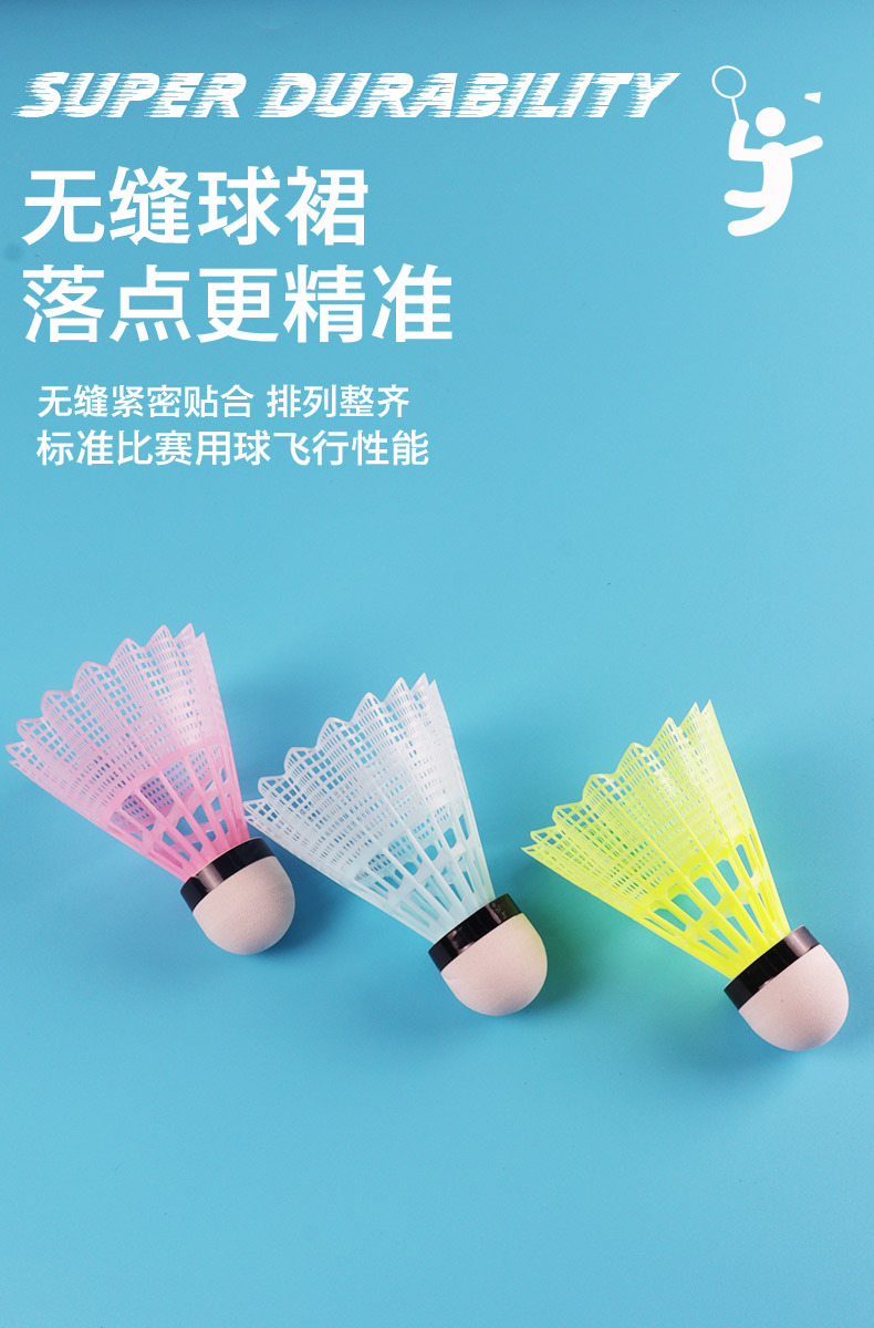 尼龙羽毛球厂家批发耐打不烂塑料软木球头专业训练比赛用羽毛球