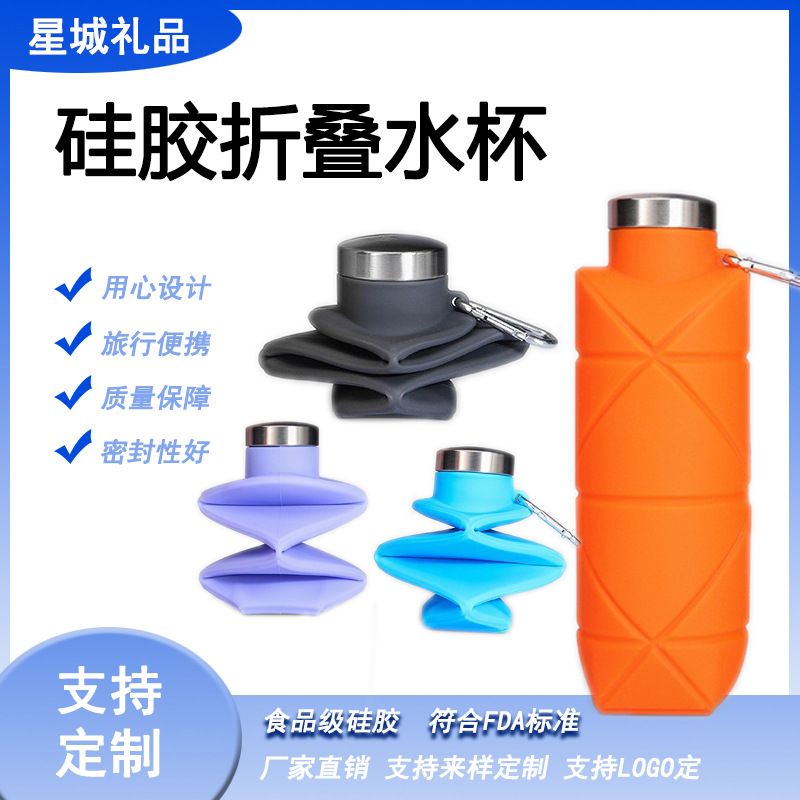 メーカー直販シリカゲル折り畳み運動水筒屋外旅行は耐高温転倒防止携帯コップに乗る