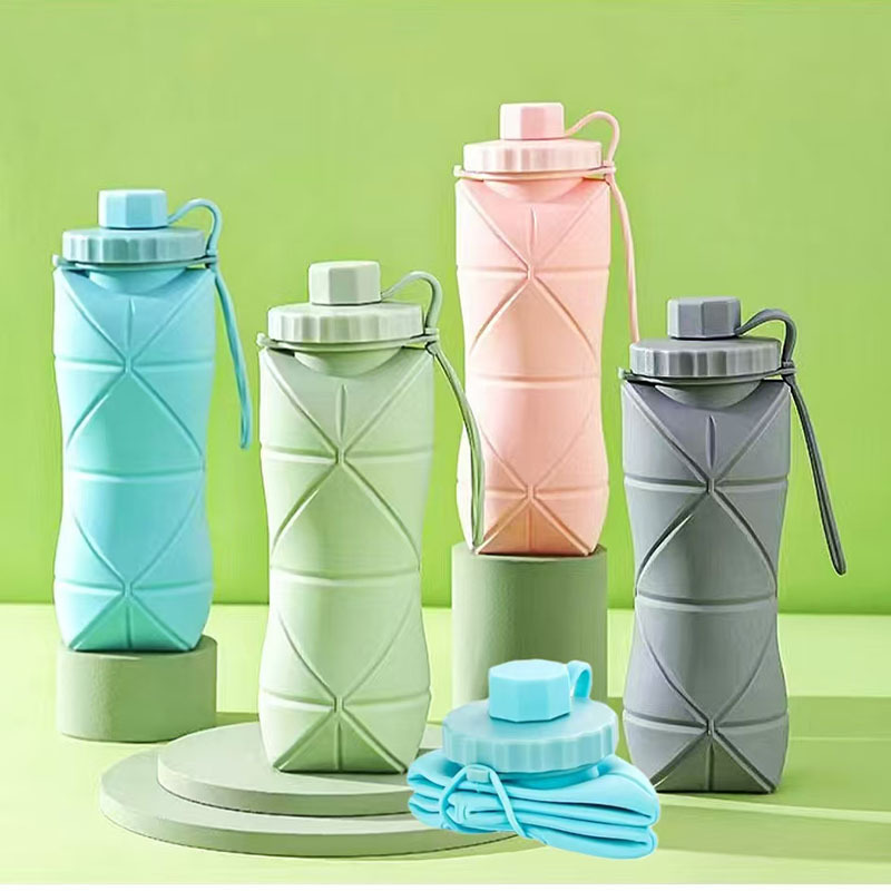 クロスボーダー起爆シリコン折り畳み運動水筒屋外旅行500/700ml転倒防止伸縮水コップ