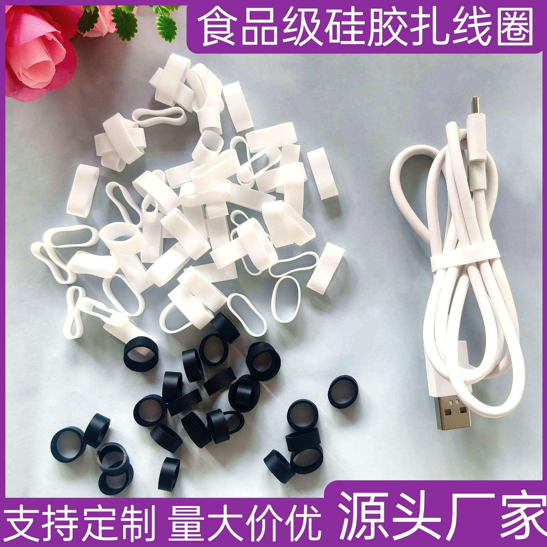 メーカー直販食品級シリカゲルリングデータ線イヤホン線シリカゲルコイル万能環境保護データ線バンド