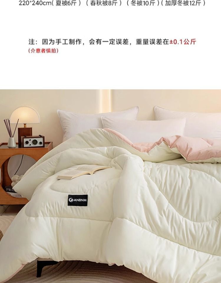 尺寸规格 110x150cm午睡被【约2斤】,150x200cm春秋被【约重3斤】,150x200cm春秋被【约重4斤】,150x200cm冬被【约重6斤】,150x200cm加厚冬被【约重8斤】,180x220cm春秋被【约重4斤】,180x220cm春秋被【约重6斤】,180x220cm加厚冬被【约重8斤】,200x230cm春秋被【约重5斤】,200x230cm春秋被【约重6斤】,200x230cm加厚冬被【约重8斤】,200x230cm特厚冬被【约重10斤】,220x240cm春秋被【约重6斤】,220x240cm加厚冬被【约重8斤】,220x240cm特厚冬被【约重10斤】,220x240cm超厚冬被【约重12斤】