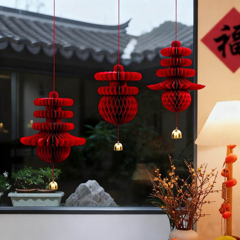 2026新年元宵装饰折纸蜂窝葫芦灯笼架马年春节装饰春字灯笼挂件