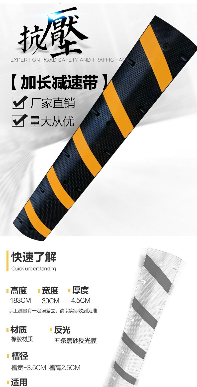 183cm加长橡胶减速带橡胶减速缓冲带汽车道路减速带带线槽减速带