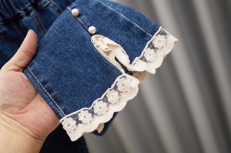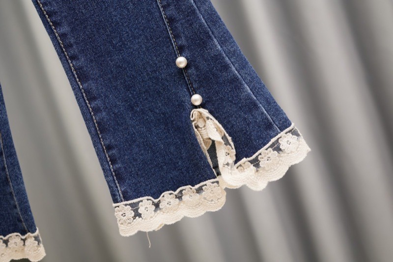 女の子用デニムパンツ 2025年春新作 細見え 女の子用フレアパンツ 子供用フリル付きアウターパンツ 子供用ロングパンツ トレンド