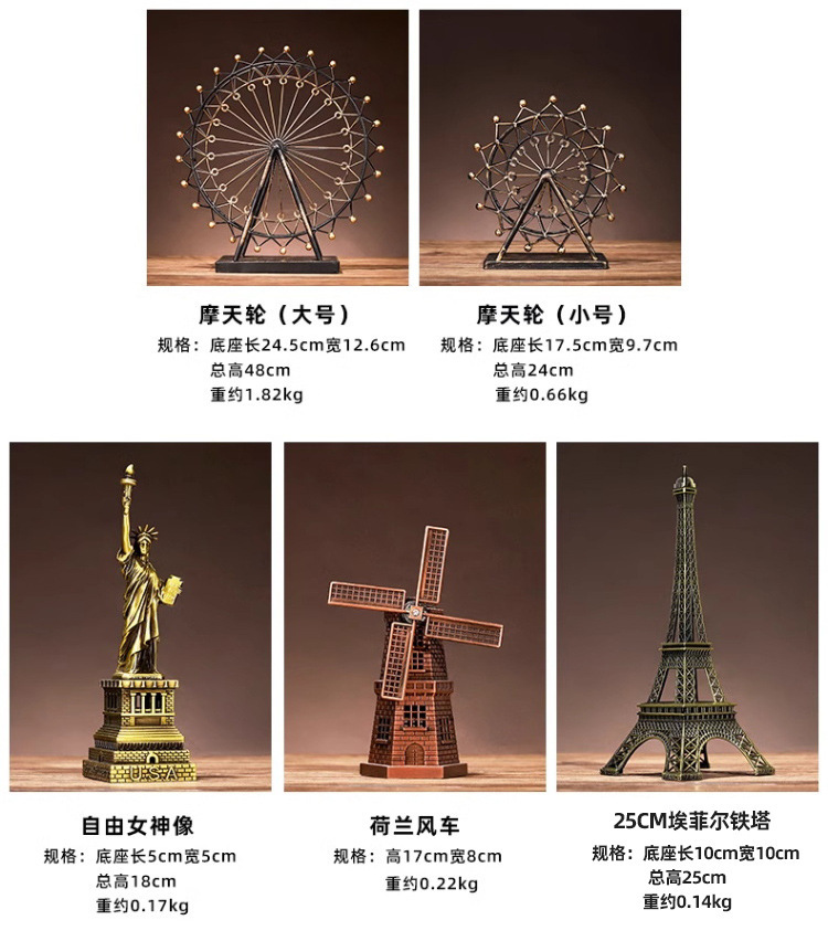 东方明珠大号金属摆件,帝国大厦金属摆件,比萨斜塔金属摆件,广东塔18cm金属摆件,广东塔22cm金属摆件,巴黎铁塔25cm金属摆件,巴黎铁塔32cm金属摆件,巴黎铁塔38cm金属摆件,巴黎铁塔48cm,自由女神小号金属摆件,自由女神中号金属摆件,自由女神大号金属摆件,自由女神特大号,摩天轮小号金色,摩天轮小号古铜色,摩天轮小号银色,摩天轮小号红铜色,摩天轮小号白色,摩天轮金色金属摆件,简约铁线摩天轮可转动,自行车金属摆件,古铜色酒桶酒架,三轮车酒架-复古色,叶子手提酒架-金色,叶子手提酒架-古铜色,炮台酒架-玫瑰金,圆形酒架【黑色】,小鹿水杯架矮款,小鹿水杯架高款,金色链条酒架,古铜色链条酒架,银色链条酒架,方管拆装蜂巢款酒架,皇家巡游马车古铜,向日炮型红酒架古铜色,带斗拖拉机酒架铜色,手拉车酒架铜色,红古铜地球仪摆件,青古铜地球仪摆件,银色荷兰风车,青铜色荷兰风车,红铜色荷兰风车,中号银色摩天轮,中号红铜摩天轮,中号青铜摩天轮,中号金色摩天轮,小号飞机模型(袋装),一战双翼战机红色-小号,战双翼战机黄色-小号,一战双翼战机蓝色-小号,小号美式二战飞机-黄色,小号美式二战飞机-白色,小号美式二战飞机-蓝色,中号镀银飞机模型,中号镀金飞机模型,大号镀银飞机模型,大号镀金飞机模型,大号红色飞机模型,大号黄色飞机模型,大号蓝色飞机模型,老爷车红色金属摆件,老爷车蓝色金属摆件,老爷车白色金属摆件