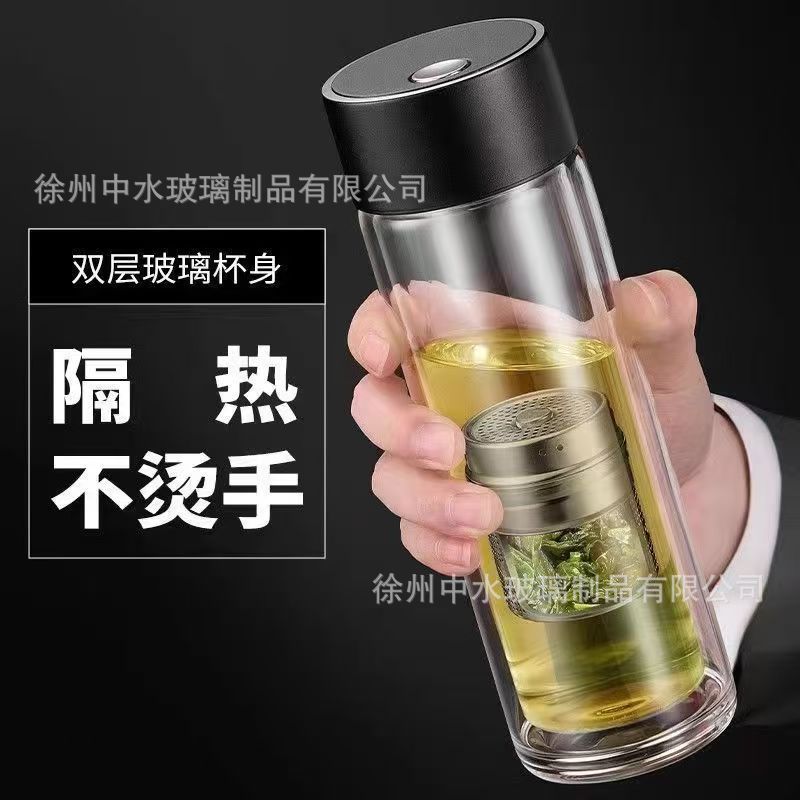 茶水分離ティーカップ二重層火傷防止断熱透明カップメンズビジネスポータブルウォーターカップ密封されたガラスウォーターカップ