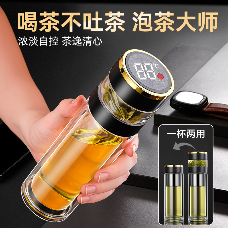 お茶分離知能カップ高級測温泡カップ男女厚い二重グラス断熱耐高温カップ