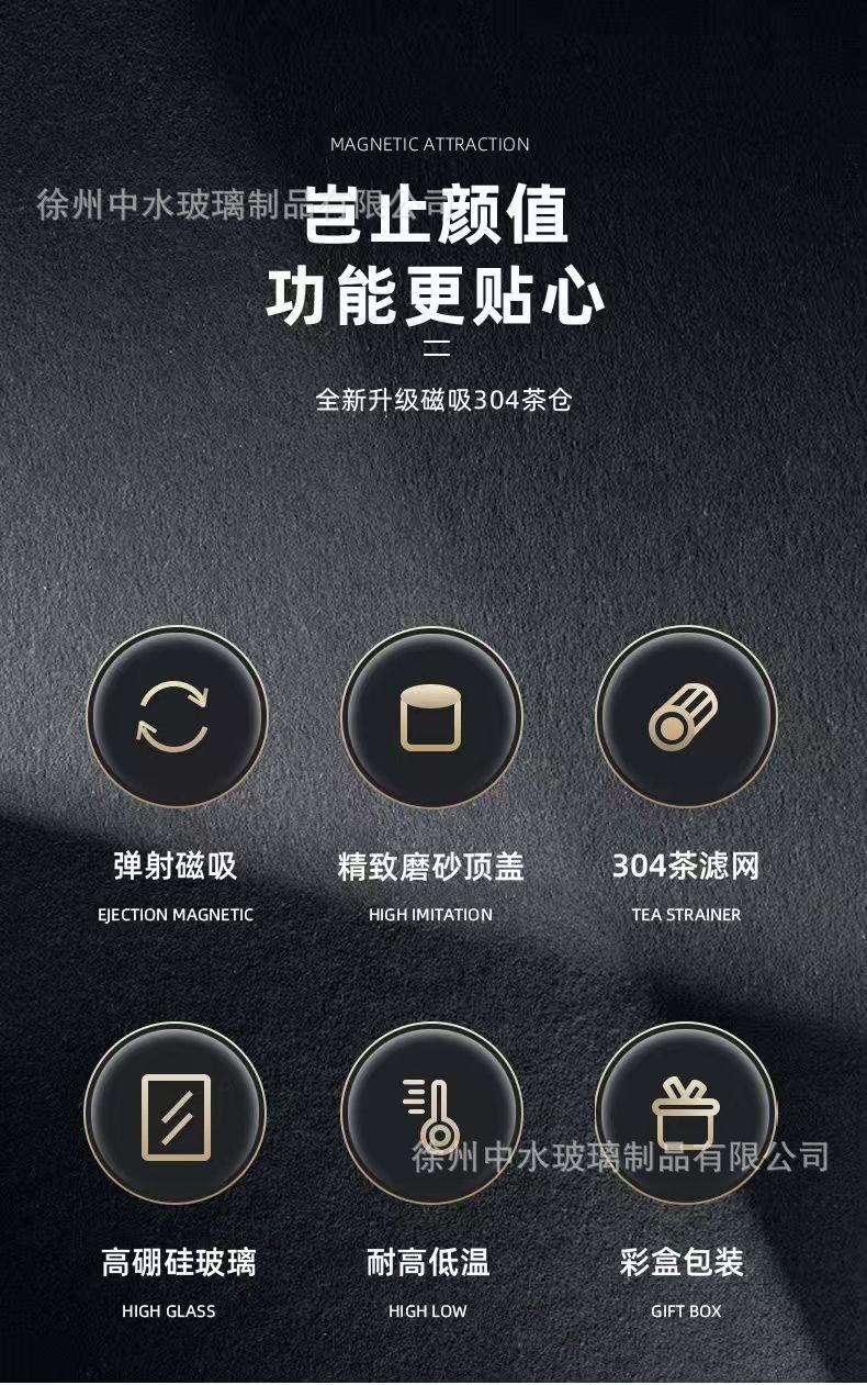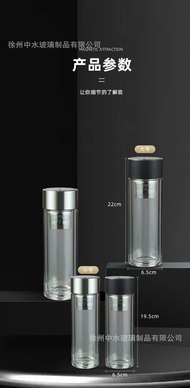 磁吸式玻璃杯磁弹高硼硅材质双层男士隔热耐高温防烫茶水分离杯