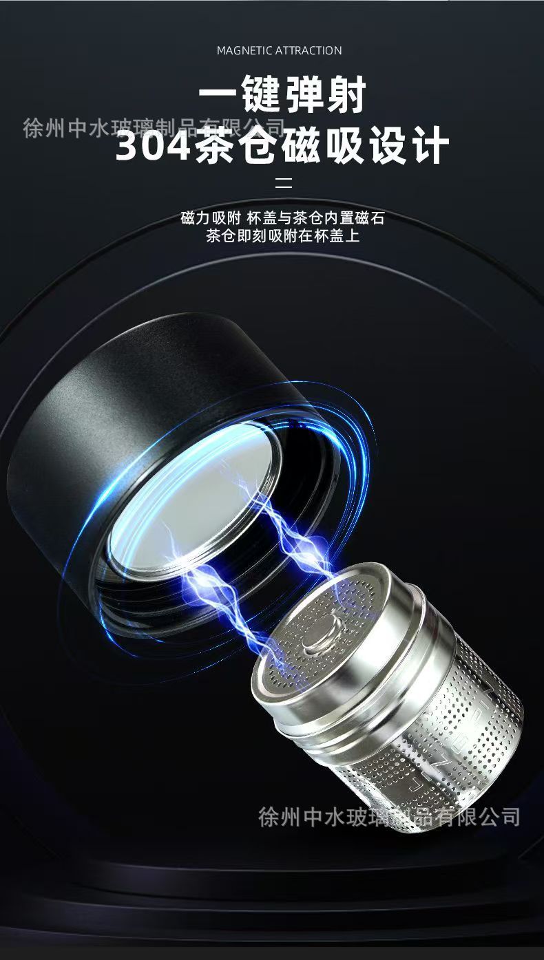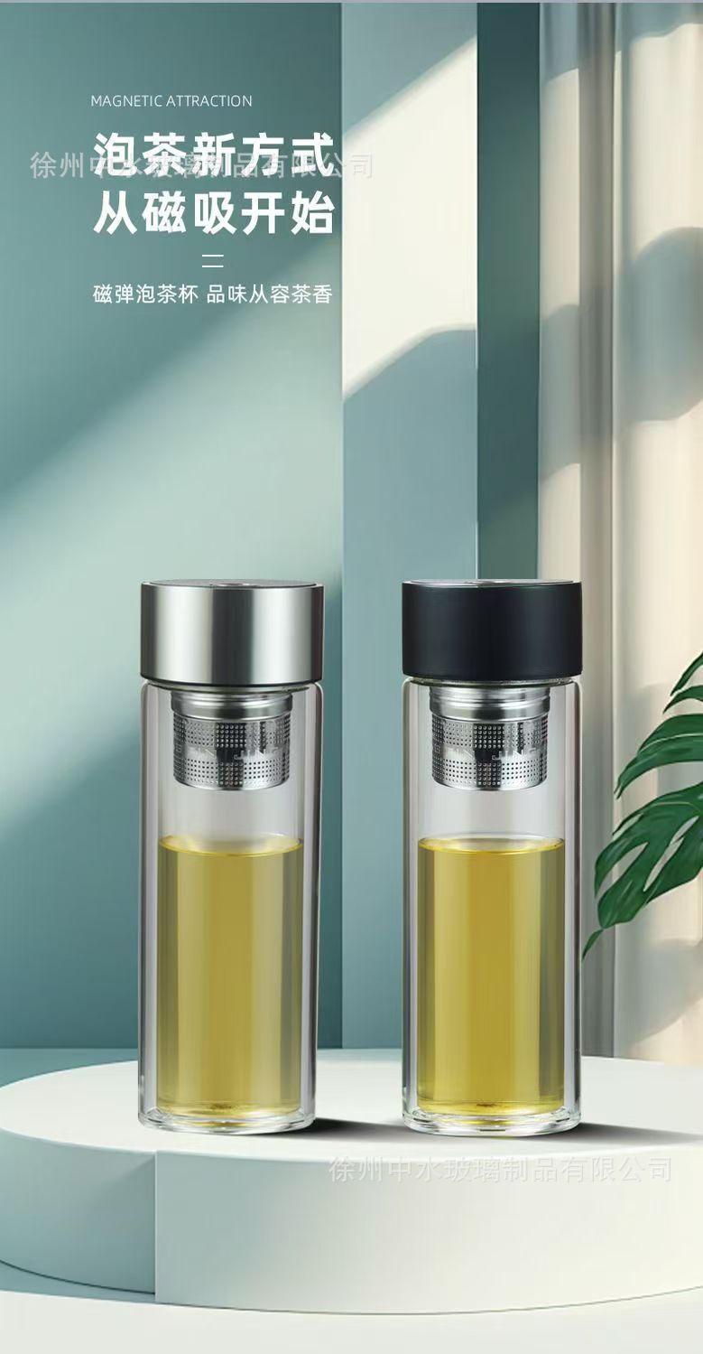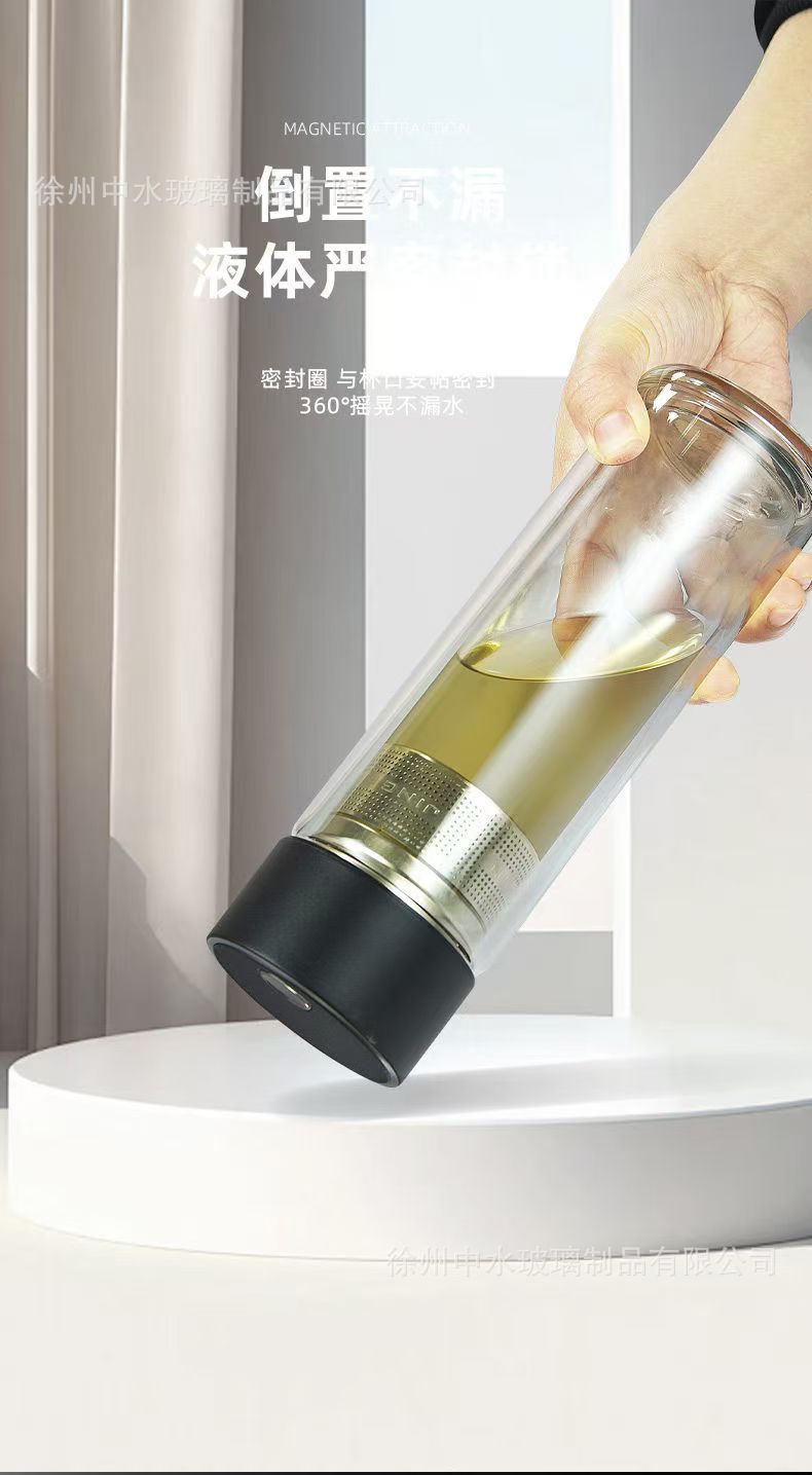 茶水分離カップ、磁気ティーカップ、磁気吸引カップ、高温耐性ガラスカップ、ポータブルティーカップ、オフィスカップギフト