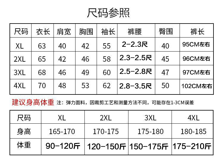 尺码 XL适合90-120斤,2XL适合120-150斤,3XL适合150-175斤,加肥码适合175-210斤