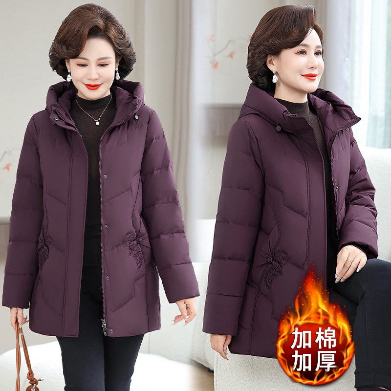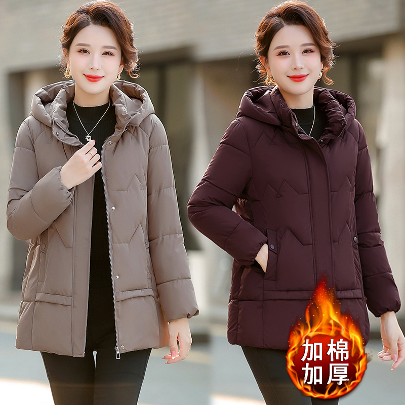 2025新款妈妈冬装棉服4050岁加棉加厚外套中老年女装连帽保暖棉袄
