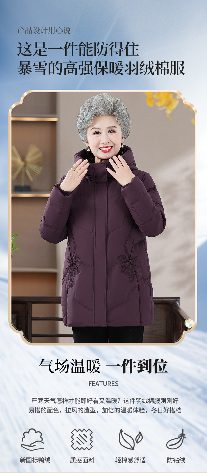 中老年羽绒棉棉服女新款奶奶冬装棉衣妈妈装冬季加棉加厚保暖外套
