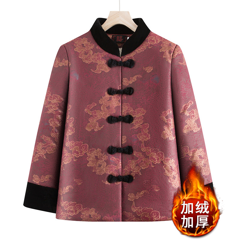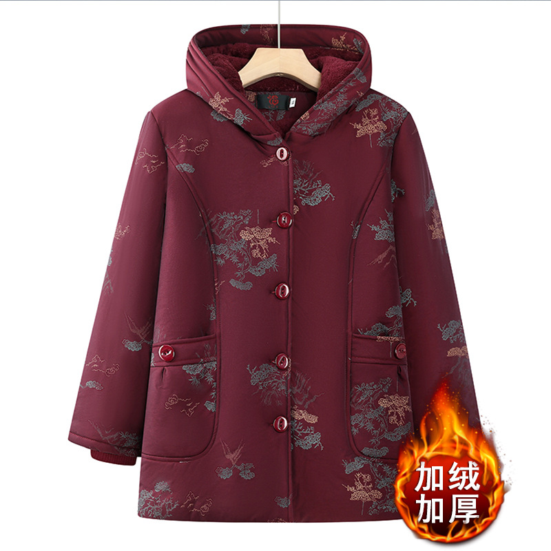 中老年人冬装加绒加厚外套妈妈装棉袄老太太保暖上衣奶奶唐装棉衣