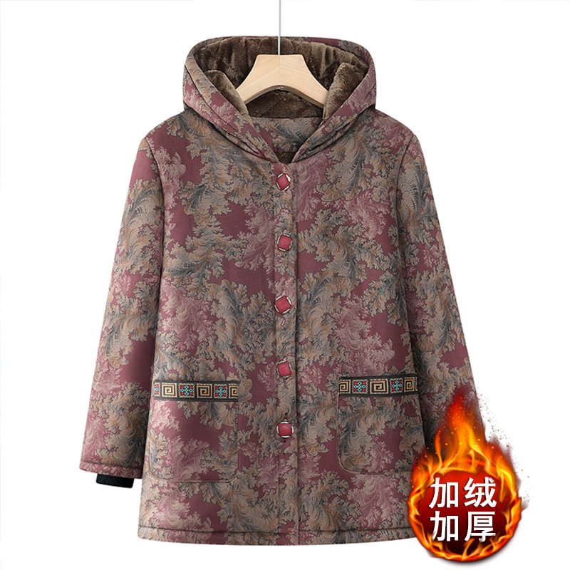 中高年の冬服の綿入れの女性の服のお母さんの秋冬の綿服の上着のおばあさんはベルベットを着て綿服を厚くします。